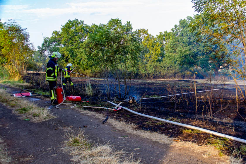 HOPFMANNSFELD (ol). Auch in Hopfmannsfeld war es ein Flächenbrand, der am Mittwoch die Feuerwehr auf den Plan rief. Rund 2.500 Quadratmeter Wiese samt Gestrüpp standen in Flammen.