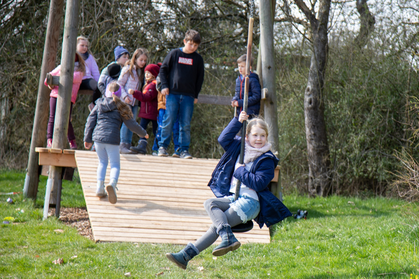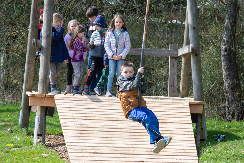 „Richtig toll“, fanden die Kids die neuen Geräte auf dem Spielplatz. Wenn die auch wegen dem frisch gesäten Rasen noch nicht genutzt werden können, war die Vorfreude darauf groß. Bis dahin wird die Seilbahn rauf und runter gefahren.