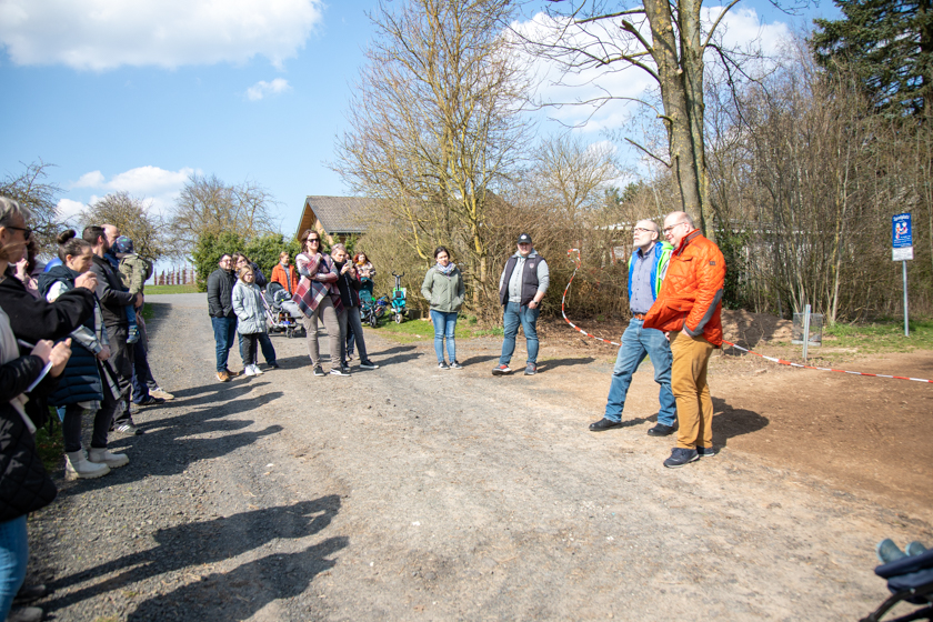 Fast schon Volksfeststimmung war es, die in Lingelbach kurz vor den Osterfeiertagen nahe des Spielplatzes herrschte. Kein Wunder: Der sollte nach einigen Wochen der Schließung und Neugestaltung endlich offiziell eingeweiht werden – oder jedenfalls fast. Bespielbar sind die neuen Geräte noch nicht, dafür muss nämlich erst der frisch ausgesäte Rasen wachsen. In drei bis vier Wochen soll es dann aber endlich so weit sein. „Wenn es nachts aufhört zu frieren“, merkte Bauhof-Chef Bernd Schmidt an.