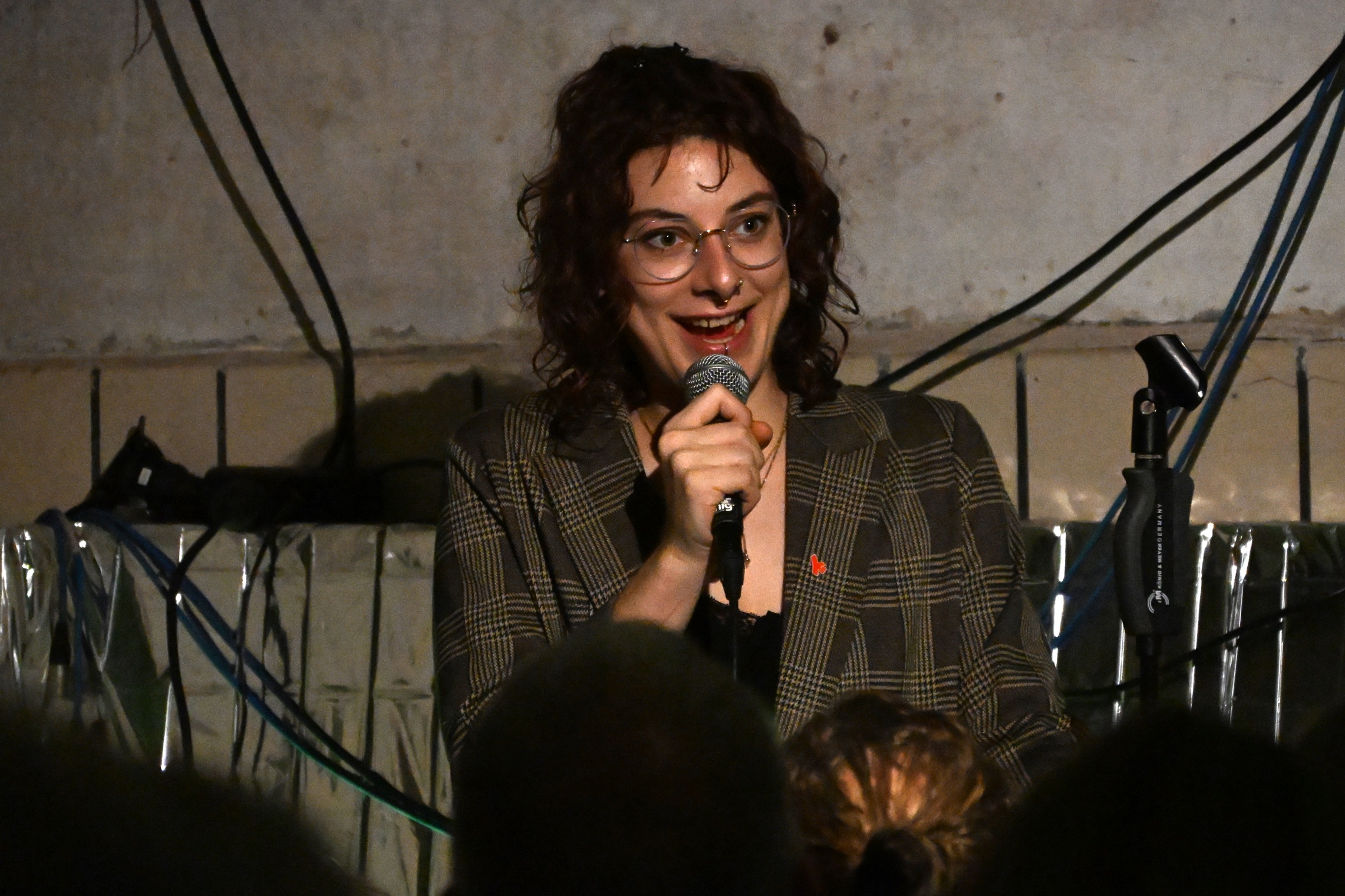 Diese stellte dem Publikum zunächst die Regeln vor: Die Poetinnen und Poeten dürfen sich nicht verkleiden und haben pro Vortrag sieben Minuten Zeit. Das Publikum indes muss den Vortragenden mit Respekt begegnen und über die Intensität seines Applauses den Sieger ermitteln. Schwer genug, denn auch dieses Mal hatte Stella Jantosca ein überaus abwechslungsreiches Line-Up zusammengestellt: Fünf Künstlerinnen und Künstler von Marburg bis Mainz hatten ihre Gedichte und Geschichten mitgebracht. Den Anfang machte Kaddy Kupfer aus Limburg mit ihrem berührenden Text vom „Moment“.