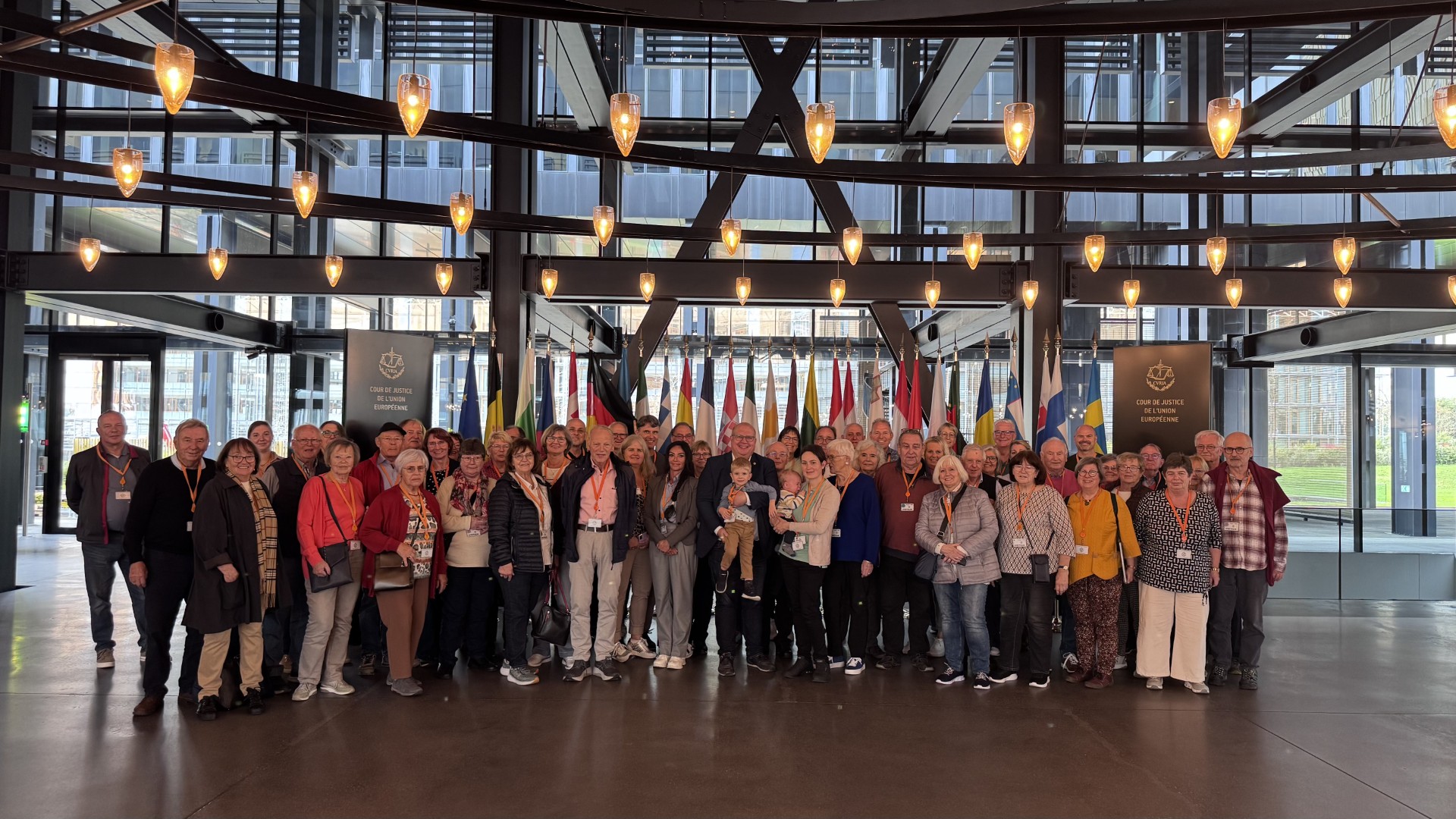 Direkt nach der Anreise besuchte die Vogelsberger Abordnung den Gerichtshof der Europäischen Union. Kompetent wurde den Gästen der Gebäudekomplex zwischen Avenue John F. Kennedy und Boulevard Konrad Adenauer erklärt. Im großen Sitzungssaal standen die Funktionalität und die Abläufe im EuGH im Mittelpunkt. Der Gerichtshof, der im Kern aus 27 Richtern aus allen EU-Mitgliedstaaten besteht, sichert gemäß Art. 19 Abs. 1 Satz 2 der EU-verträge „die Wahrung des Rechts bei der Auslegung und Anwendung der Verträge“; mit anderen Worten ist das Ziel seiner Verhandlungen er für die einheitliche Anwendung Europäischen Rechts in allen EU-Mitgliedstaaten. Die Gerichte der „letzten Instanz“ der Mitgliedstaaten, in Deutschland z. B. der Bundesfinanzhof, das Bundesarbeitsgericht, oder der Bundesgerichtshof, können dem EuGH Fragen hinsichtlich der Auslegung des Rechts der Europäischen Union vorlegen. Die Urteile des EuGH binden in der entschiedenen Sache die Gerichte aller Mitgliedstaaten. Im Anschluss an die Führung im EuGH stand die Geschichte und Bedeutung des Großherzogtums Luxemburg für Europa bei einer Stadtführung auf dem Programm.