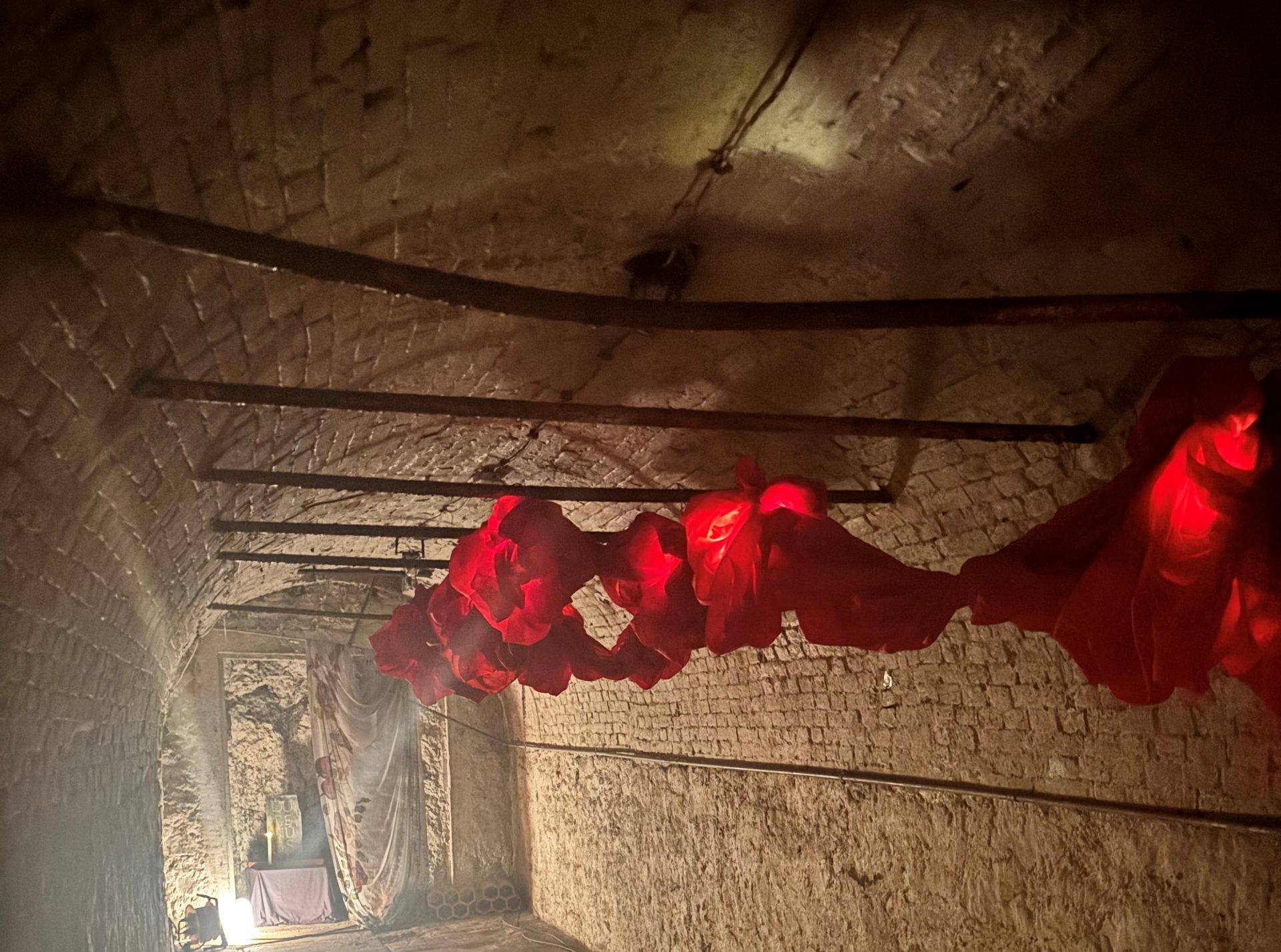 Der Bananenkeller wurde in diesem Jahr unter dem Motto „Hinab in den Traum“ in allen Räumen der drei Stockwerke mit einer kompletten Geschichte bespielt. Die Führungen hier waren eine wunderbare Mischung aus Kunst- und Kellererlebnis und dauerten nicht wie letztes Jahr 25, sondern ganze 40 Minuten. Die Schlangen vor dem Bananenkeller waren entsprechend lang. Dieses Jahr kamen sogar ganze Gruppen.