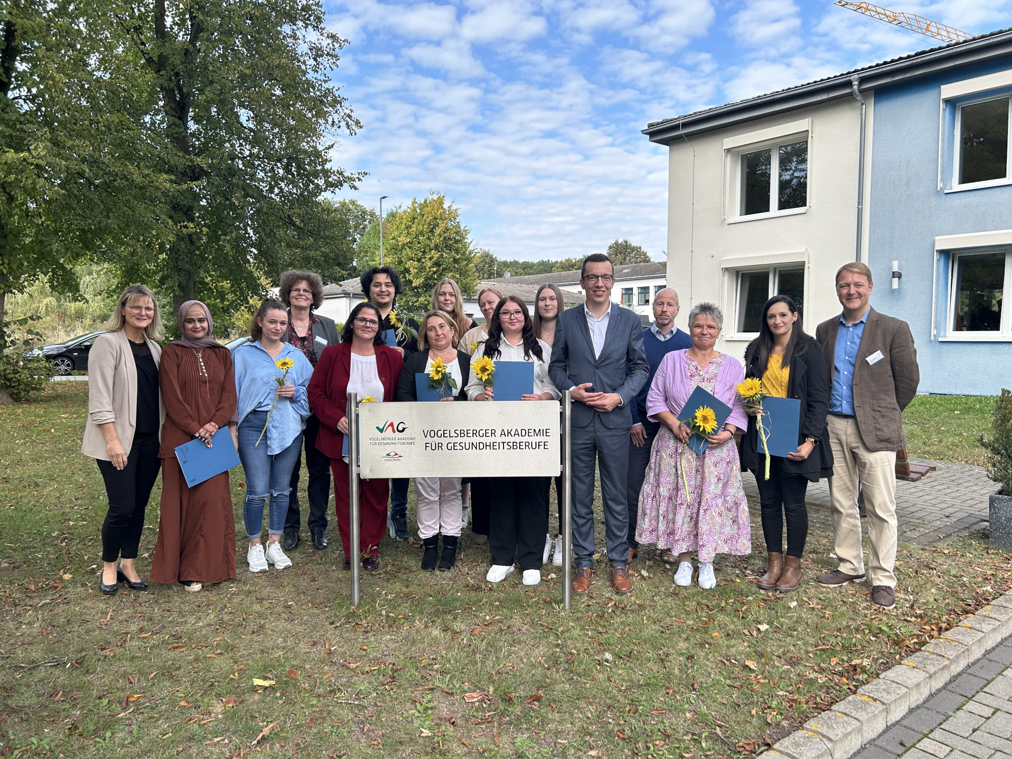 VOGELSBERGKREIS (ol). An der Vogelsberger Akademie für Gesundheitsberufe (VAG) wurden gleich drei Kurse feierlich verabschiedet. Acht Pflegefachkräfte sowie 21 Alten- und Krankenpflegehelferinnen und -helfer schlossen ihre Ausbildung erfolgreich ab. Vertreterinnen und Vertreter des Vogelsbergkreises, der Krankenhäuser und der Akademie würdigten die Leistungen der Absolventinnen und Absolventen und betonten die große Bedeutung des Pflegeberufs.