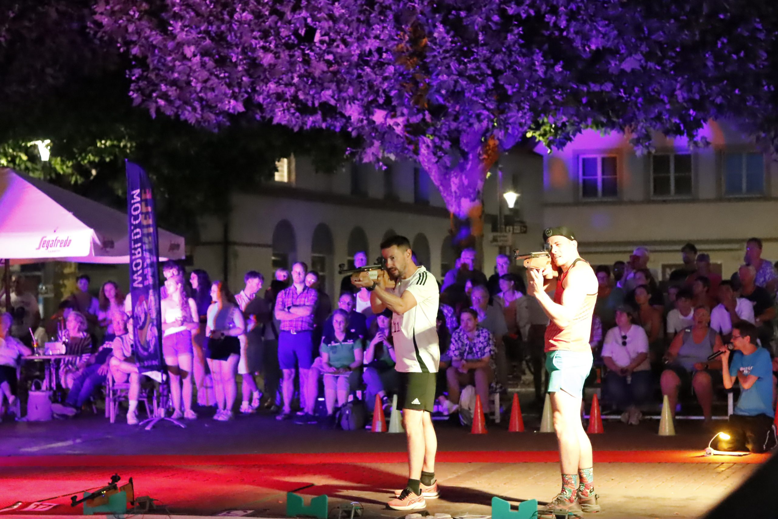 Wer den magischen Moment des Biathlons, nämlich das Schießen unmittelbar nach körperlicher Anstrengung erleben möchte, meldet sich zum parallel laufenden CardioBiathlon-Duell an. Welcher Vogelsberger Biathlon-Neuling wird Etappensieger und sichert sich den Hauptpreis? Auf den in Skandinavien entwickelten Thoraxtrainern wird die Doppelstocktechnik des klassischen Langlaufs simuliert. Stets wenn mindestens 2 Wettkämpfende angemeldet sind starten sie zum 400 m Skilanglauf, dem ein Stehendschießen mit 5 Schüssen folgt. Tagessieger wird die oder der Teilnehmende mit der höchsten Trefferzahl. Bei Treffergleichheit entscheidet die schnellere Zeit. Am Wettbewerb kann jede/r teilnehmen. Vorkenntnisse im Biathlon sind nicht erforderlich, sondern lediglich Interesse an dieser Sportart und der Mut, eine neue Herausforderung anzunehmen. Die Anmeldung erfolgt direkt am 30. November am Stand der Biathlon-Tour auf dem Hahnekiez. Die Teilnahme am Wettbewerb in Schlitz ist kostenfrei.