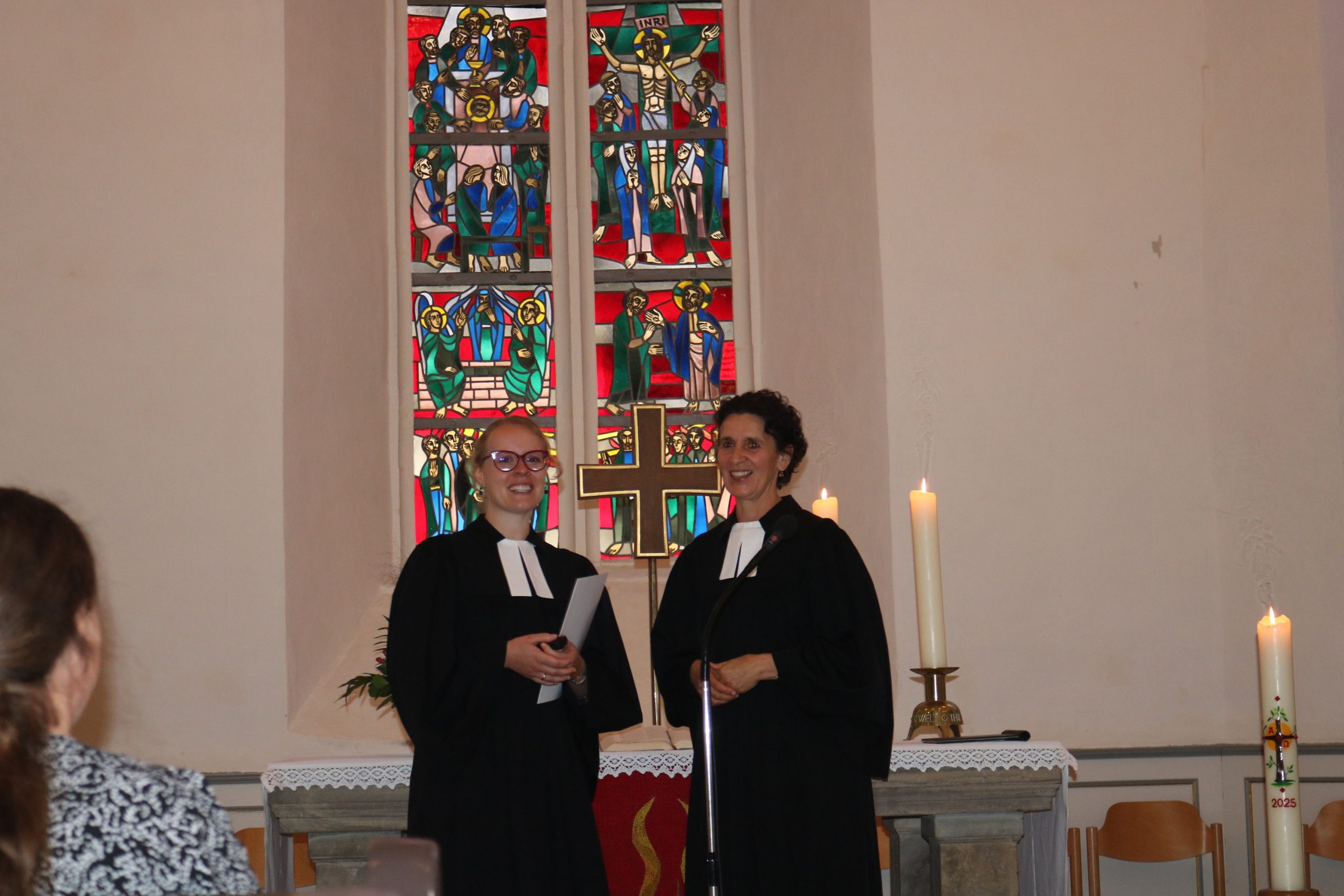 Mit den Worten „Ihre neue Pfarrerin“ präsentierte sie der Gemeinde Simona Janssen, nachdem sich beide – Pfarrerin und Gemeinde – einander verpflichtet hatten. Nach dem freudigen Applaus ergriff Dekanin Dr. Dorette Seibert das Wort. Sie freute sich sehr, dass Simona Janssen mit den Menschen vor Ort gemeinsam die Kirche gestalten wolle, und ermunterte alle Beteiligten, sich gemeinsam in der Gestaltung des Gemeindelebens einzubringen, und einander mit Vertrauen zu begegnen.