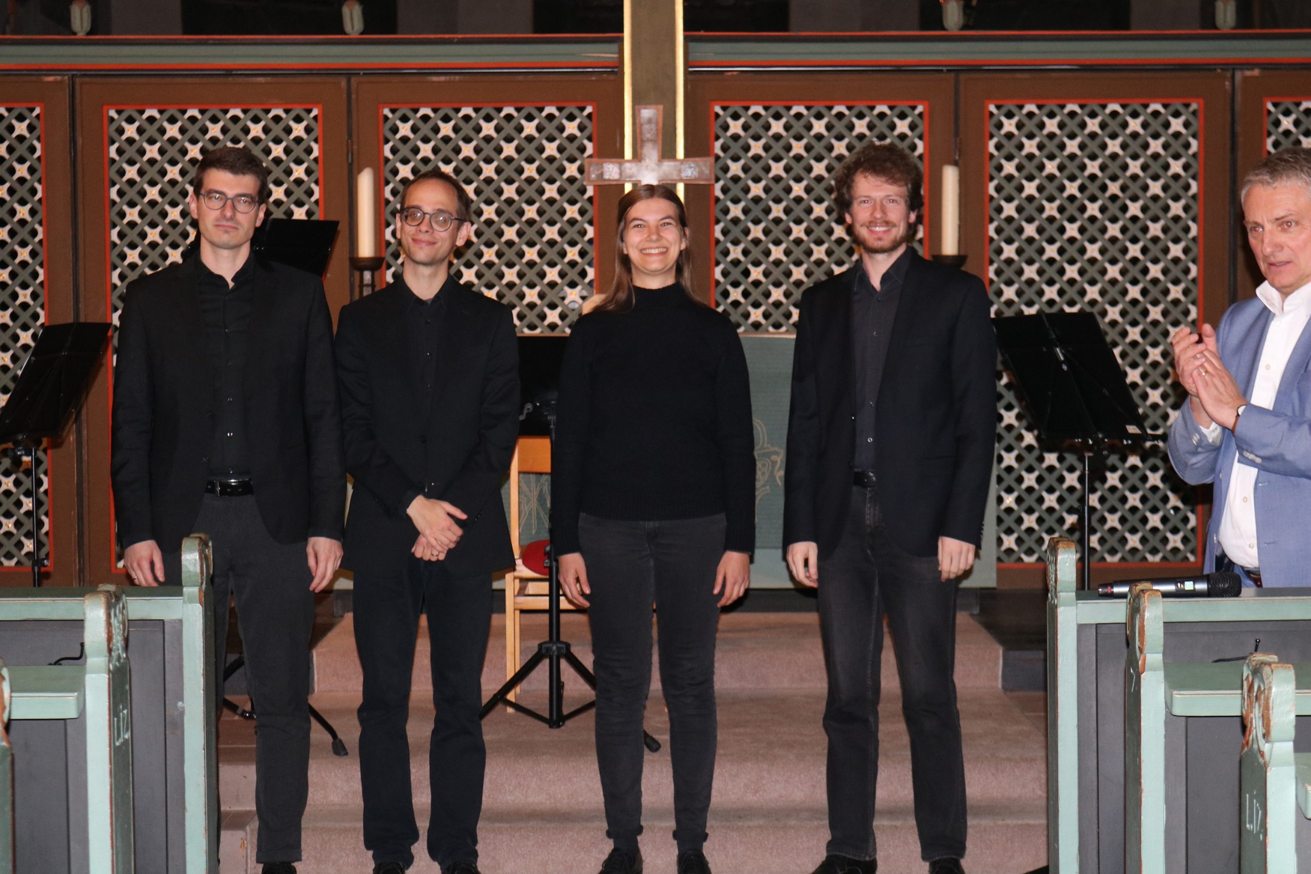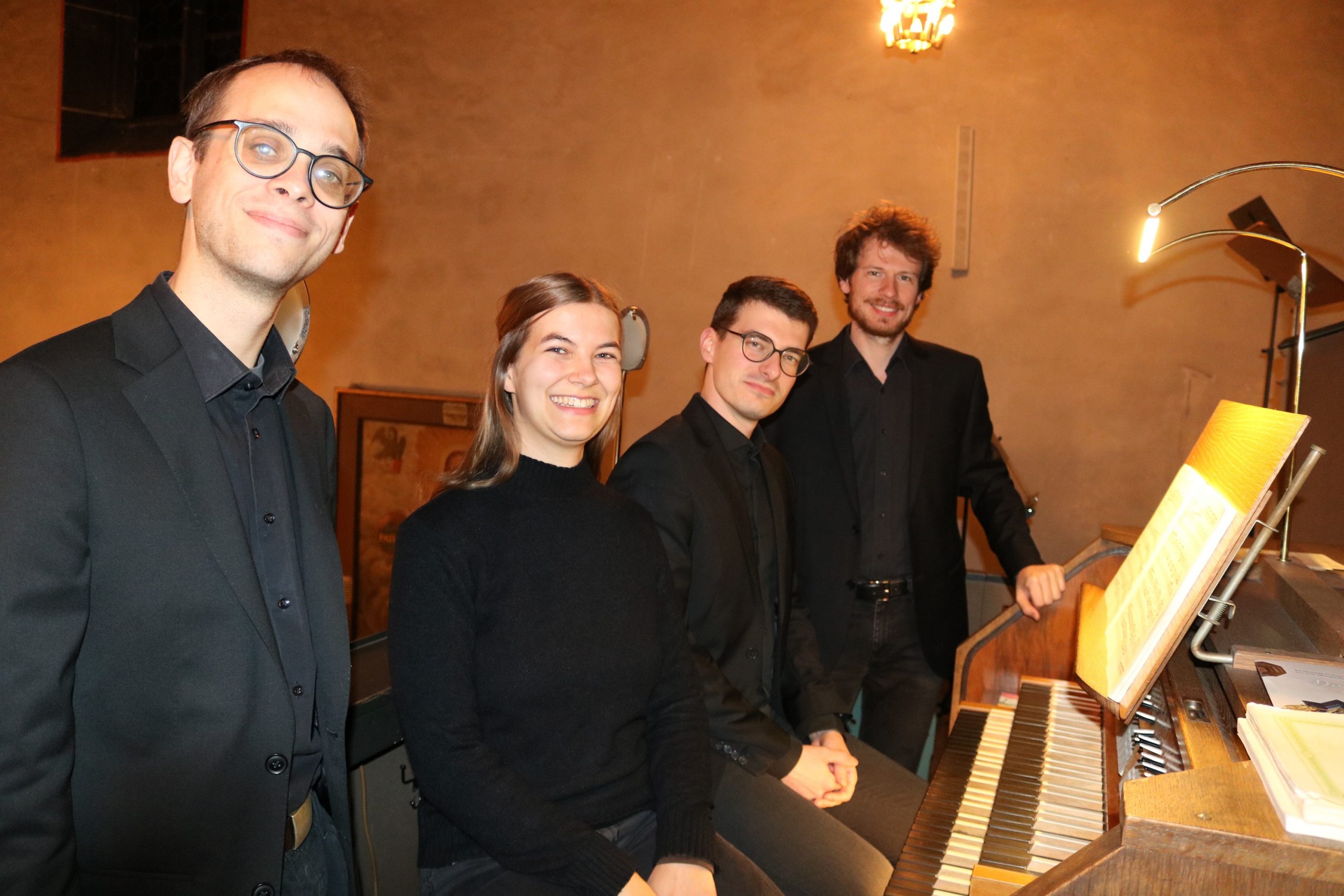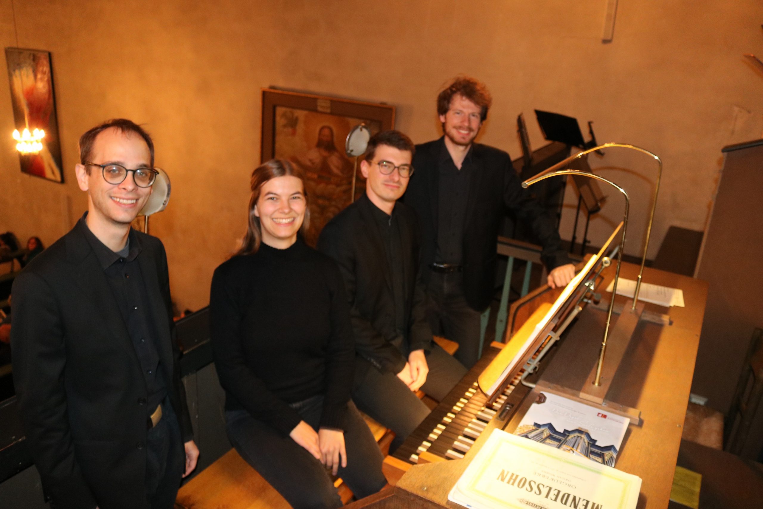 Zum Abschluss des Konzerts, das für das Alsfelder Publikum einen wirklich außergewöhnlichen musikalischen Genuss bedeutete, taten sich Christian Karl und seine Cousine Sonja Karl an der Orgel zusammen. Christian Karl, Kirchenmusiker in Alpirsbach, spielte die ersten beiden Sätze der 1. Sonate in f-Moll, Sonja Karl, derzeit im Masterstudiengang als Kirchenmusikerin, brachte die Sätze drei und vier dar. Nicht enden wollender Applaus zeigte den elf Musikern, dass sie dem Publikum einen berührenden musikalischen Abend geschenkt hatten, der noch nicht zu Ende war: Mit ihrem gesungenen Segen „Verleih uns Frieden gnädiglich“ – begleitet von Henrik Schlitt an der Orgel und gesanglich unterstützt von Antje Margolf – bezauberten die Organisten die Gäste in der Dreifaltigkeitskirche bis zum allerletzten Moment.