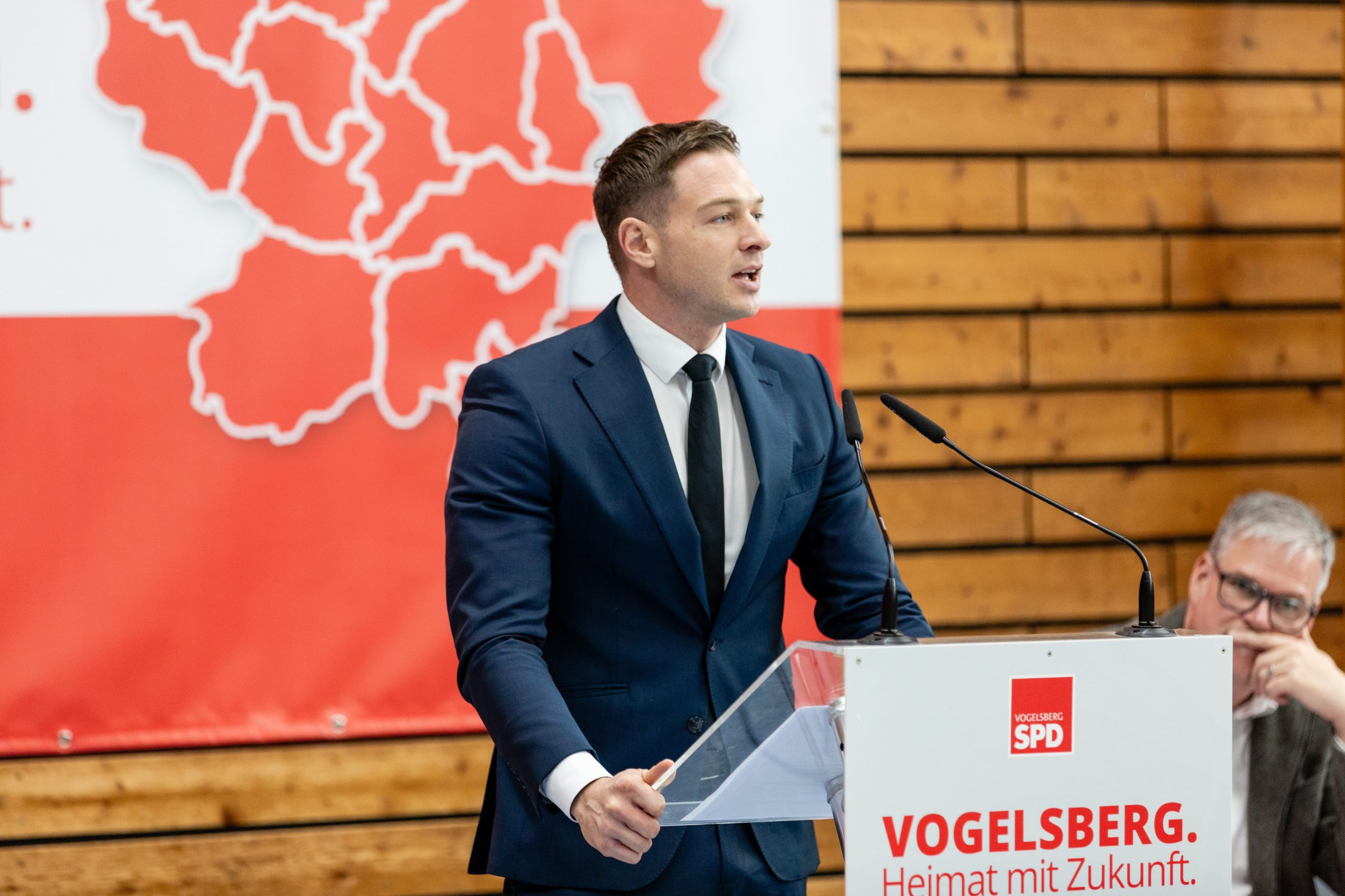 „Wir werden weiter dafür sorgen, dass die Dinge vor Ort funktionieren und dass der Alltag für die Vogelsbergerinnen und Vogelsberger einfacher und besser wird. Wir tun das mit einem klaren Fokus auf Themen, die wichtig sind und auf diejenigen, für die die Vogelsberger SPD Politik macht: Die vielen Menschen, die hier jeden Morgen aufstehen, hart arbeiten, sich an die Regeln halten und dabei keine Reichtümer mit nach Hause bringen“, machte Vize-Landrat Patrick Krug, der als Spitzenkandidat die Kreistagsliste der Sozialdemokraten anführt, zu Beginn seiner Rede deutlich. Das, was man gemeinsam als SPD und als Teil der erfolgreich und vertrauensvoll arbeitenden Kreiskoalition geschafft habe, könne sich sehen lassen. Der Vogelsbergkreis stehe heute besser da als vor fünf oder noch vor zehn Jahren. Bei der Kreistagswahl gehe es darum, dass das so bleibe.