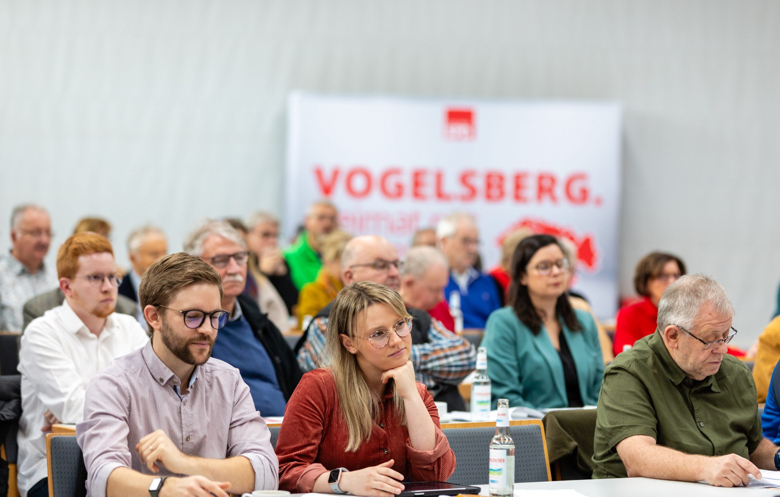 Entschlossen und mit einer klaren Zukunftsidee präsentierte sich die Vogelsberger SPD laut einer Pressemitteilung bei ihrem Parteitag am Samstag in der Stadthalle Ulrichstein. Gut 90 Mitglieder votierten für die Kandidatenliste zur Kreistagswahl am 15. März 2026 sowie für ein umfangreiches Wahlprogramm mit den Schwerpunkten Schulen, gesellschaftlicher Zusammenhalt und Mobilität.