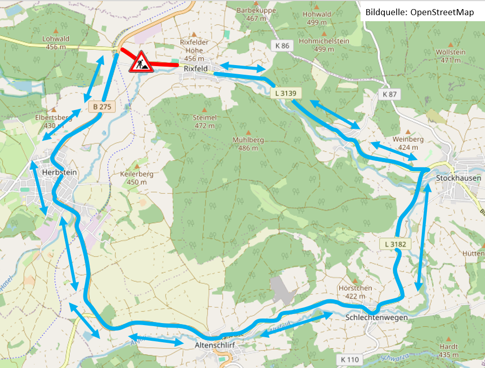Hessen Mobil beabsichtigt, die an einigen Stellen schadhafte Landesstraße 3139 zwischen der B 275 (Rixfelder Kreuz) und Herbstein/Rixfeld punktuell instandzusetzen. Dazu ist es aus Gründen des Arbeitsschutzes leider erforderlich, die Fahrbahn komplett zu sperren.