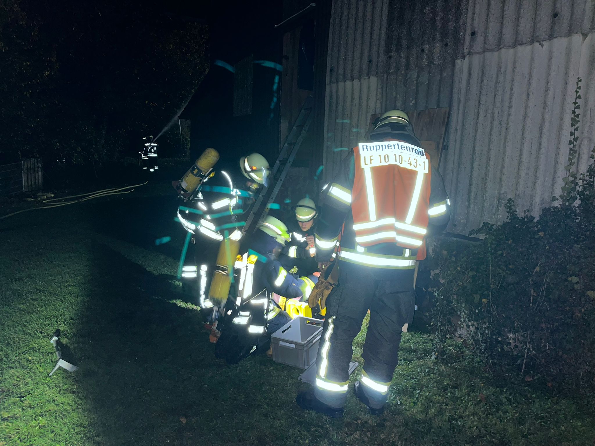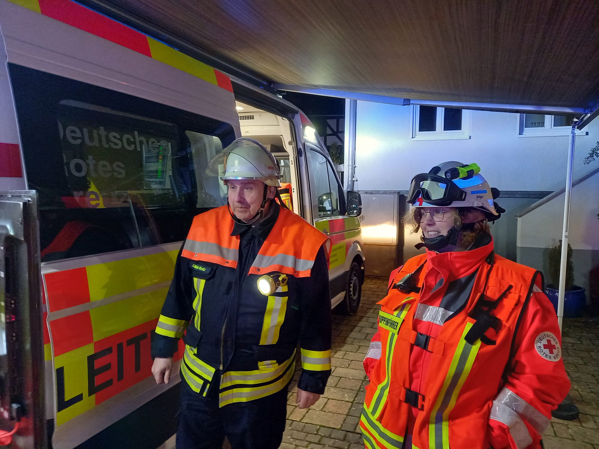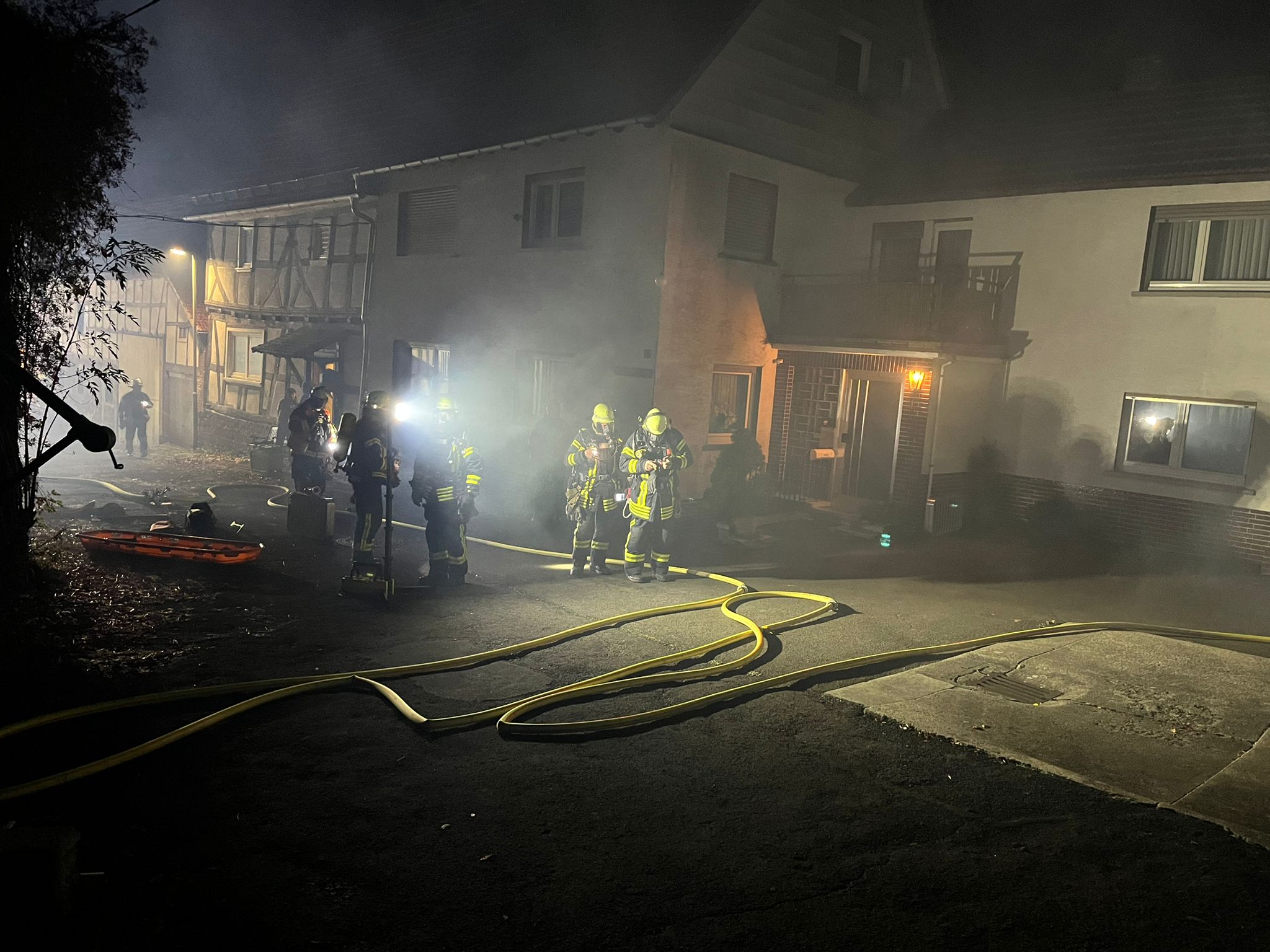 Auch beim Brand des Wohnhauses waren mehrere verletzte Personen zu versorgen. Die Einsatzabteilungen aus Ruppertenrod und Ober-Ohmen gingen gemeinsam vor, um Menschen zu retten und den Brand zu bekämpfen. Ulrich Kratz berichtete von einem fordernden, aber koordinierten Vorgehen mit mehreren eingesetzten Löschrohren. Das DRK Homberg unterstützte mit Mannschaftstransportwagen und KTW, unter der Leitung von Malte Vaubel beider Versorgung der Patienten.