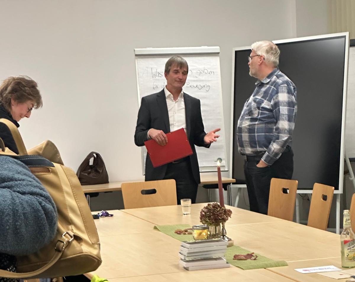 Begrüßt wurden die 22 Anwesenden von Martin Reibeling, der seit Kurzem kommissarisch das Amt des Präses im Dekanat innehat. In seiner kurzen Ansprache brachte er seine Freude über das Engagement der ehrenamtlich Tätigen zum Ausdruck und hob deren Bedeutung für das geistliche Leben im Vogelsberg hervor. Anschließend hielt Luise Berroth, stellvertretende Dekanin, die Andacht und erinnerte daran, dass die ehrenamtlichen Verkündigerinnen und Verkündiger „eine tragende Säule des kirchlichen Lebens“ im Vogelsberg sind. „Wie gut, dass wir nicht auf unsere eigene Kraft beschränkt sind“, hieß es darin. „Die Worte der Bibel und die Kraft des Heiligen Geistes tragen uns.“