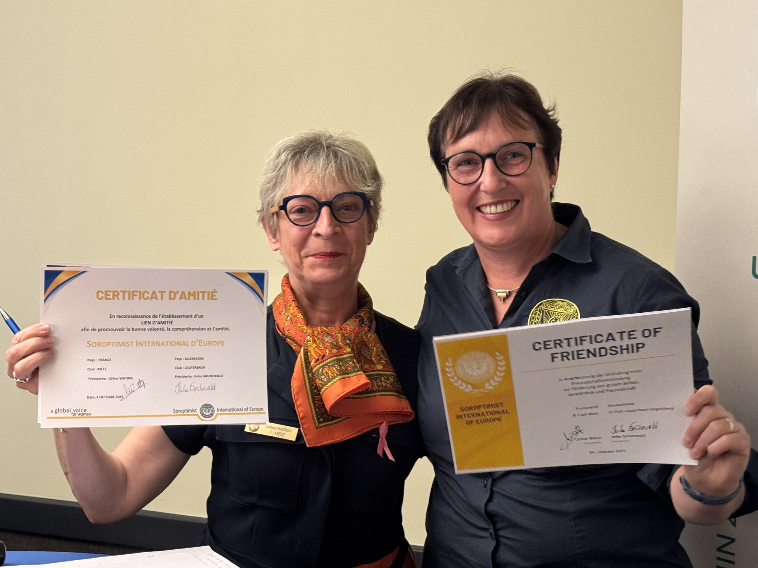 Als Höhepunkt des Wochenendes folgte die offizielle Verlinkung von SI Metz und SI Lauterbach-Vogelsberg. Diese SI-eigene, offizielle Verschwisterung zwischen zwei SI-Clubs war ein tief empfundenes Anliegen beider Clubs, die damit die deutsch-französische Verbundenheit festigen. Die enge und bedeutungsvolle Beziehung drückte sich schon in den Friedensprojekten der beiden Clubs aus. „Le petite bois de Suzanne Noël“ und „Nie wieder Krieg!“, zu deren Aktionen regelmäßig eine gegenseitige Unterstützung und Teilnahme stattfand.
