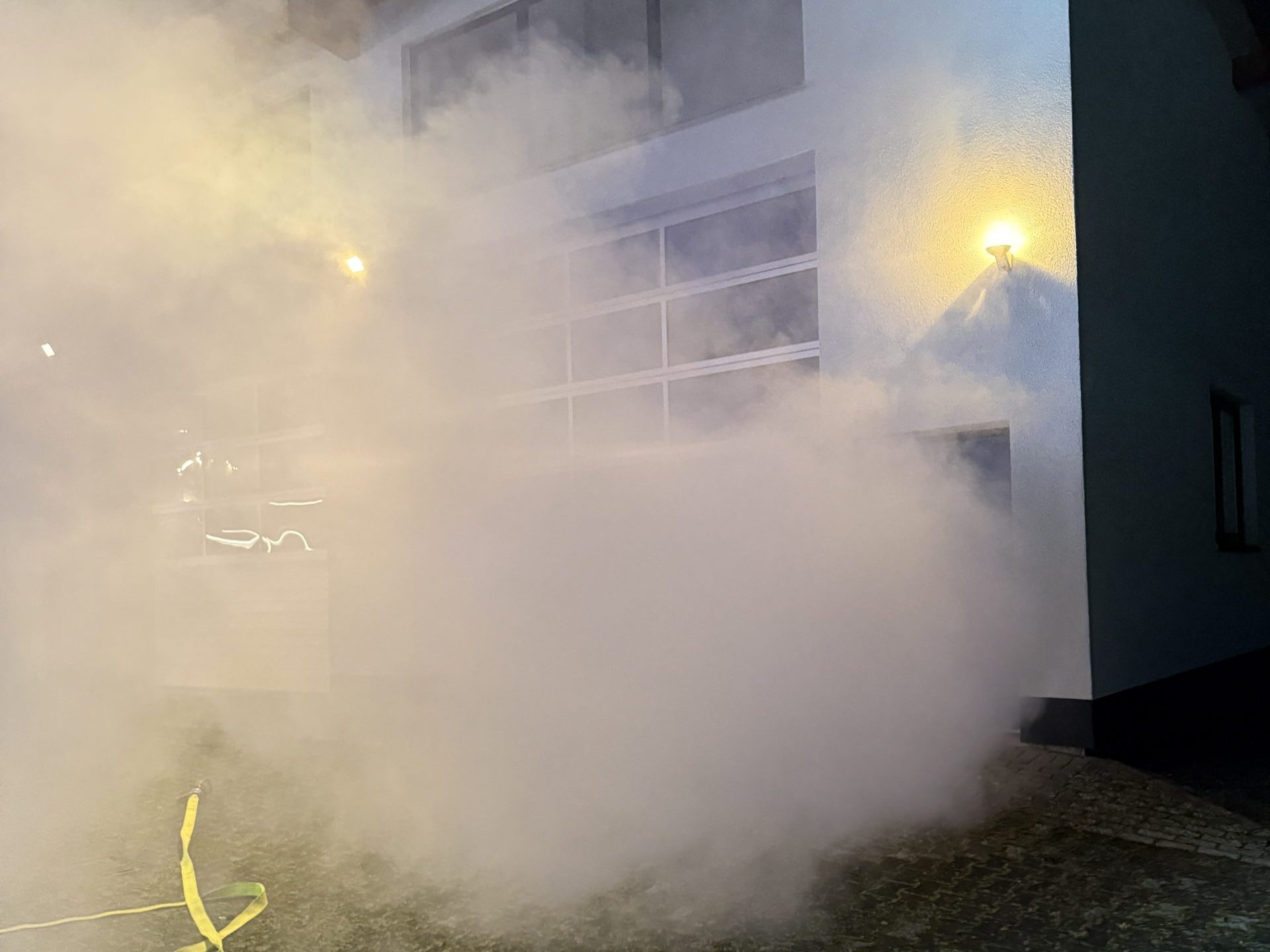Parallel dazu wurden Löschmaßnahmen im Innen- und Außenangriff eingeleitet sowie eine Riegelstellung aufgebaut, um eine weitere Ausbreitung des Brandes zu verhindern. Die Löschwasserversorgung erfolgte über einen Hydranten in unmittelbarer Nähe, die Einsatzstelle wurde mit umfangreicher Beleuchtungstechnik ausgeleuchtet, um auch bei Dunkelheit sichere Arbeitsbedingungen zu gewährleisten.