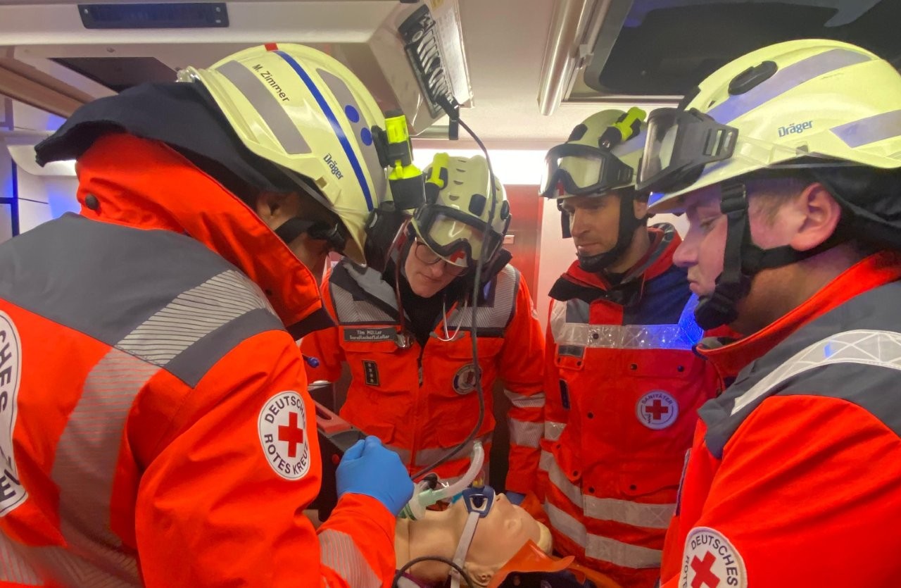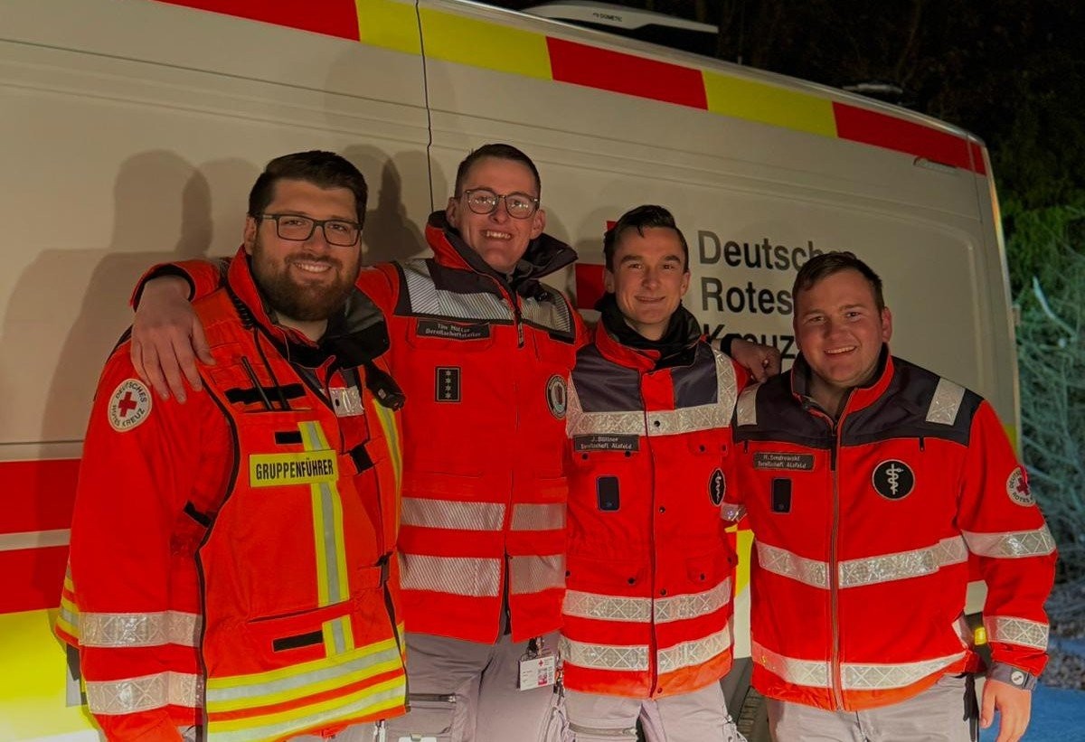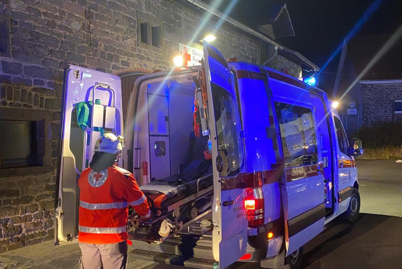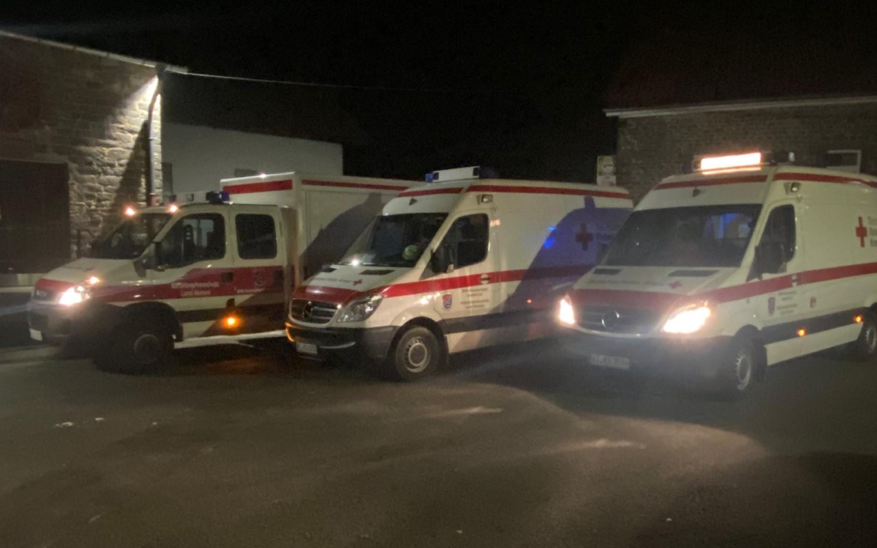 Das DRK brachte zwei Krankentransportwagen in Stellung, um die geretteten Personen medizinisch zu versorgen. Unter der Führung von Christoph Schober wurde die Einsatzdrohne des DRK Mücke gestartet, um die vermisste Person im Waldgebiet zu suchen.