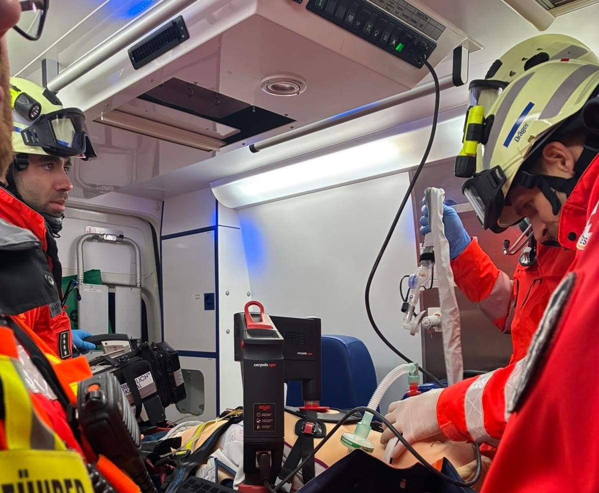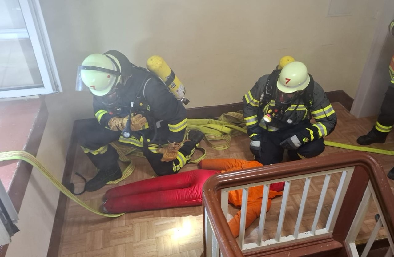 Während die Löscharbeiten fortgesetzt wurden, gelang es den Einsatzkräften schließlich, das Übungsfeuer vollständig zu löschen und das Gebäude durch Belüftungsmaßnahmen rauchfrei zu machen. Ein weiterer Patient, der schwer verletzt war, wurde im Eingangsbereich des DGH erstversorgt und anschließend ins Freie gebracht.