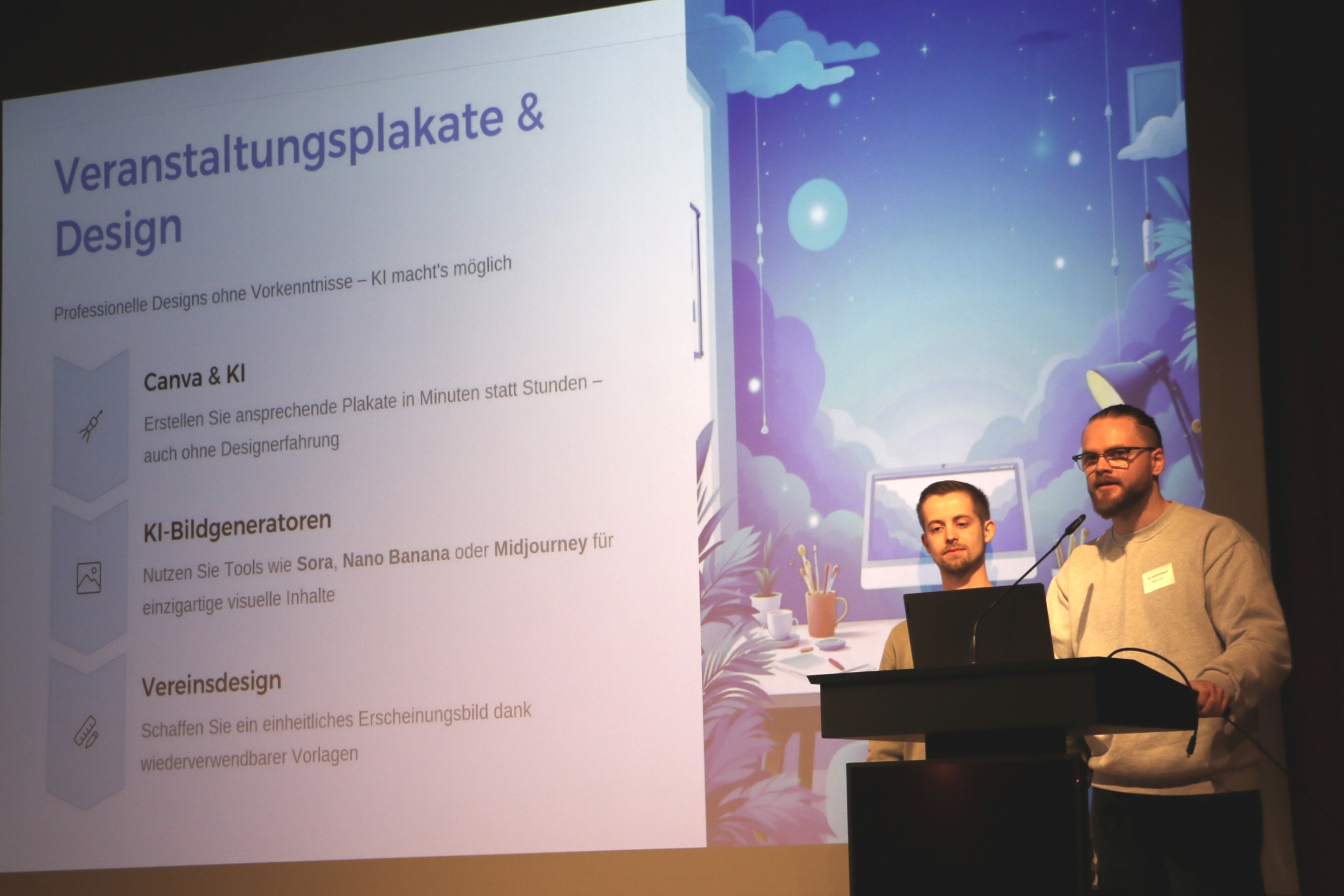 Zur KI in der Kulturarbeit gab Jan Breidenbach von Media Olymp wichtigen Input für Vereine, die zum Beispiel den Job des Schriftführers durch KI ersetzen lassen könnten. Auch Tools zur Bildgeneration oder für Präsentationen nannte er, mit denen sich die Öffentlichkeitsarbeit deutlich vereinfachen ließe.