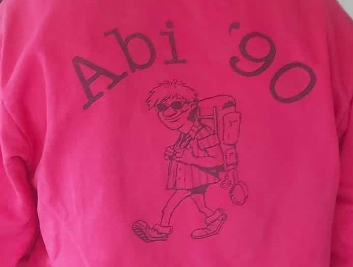 Eine Schulkameradin erschien sogar im pinkfarbenen Original-Abipulli zum Treffen. Zum Erstaunen aller konnte der pinkfarbene „Abi 90“-Schriftzug auf dem Gebäude über dem Eingang sämtlichen Renovierungsarbeiten trotzen und ist heute noch erkennbar.