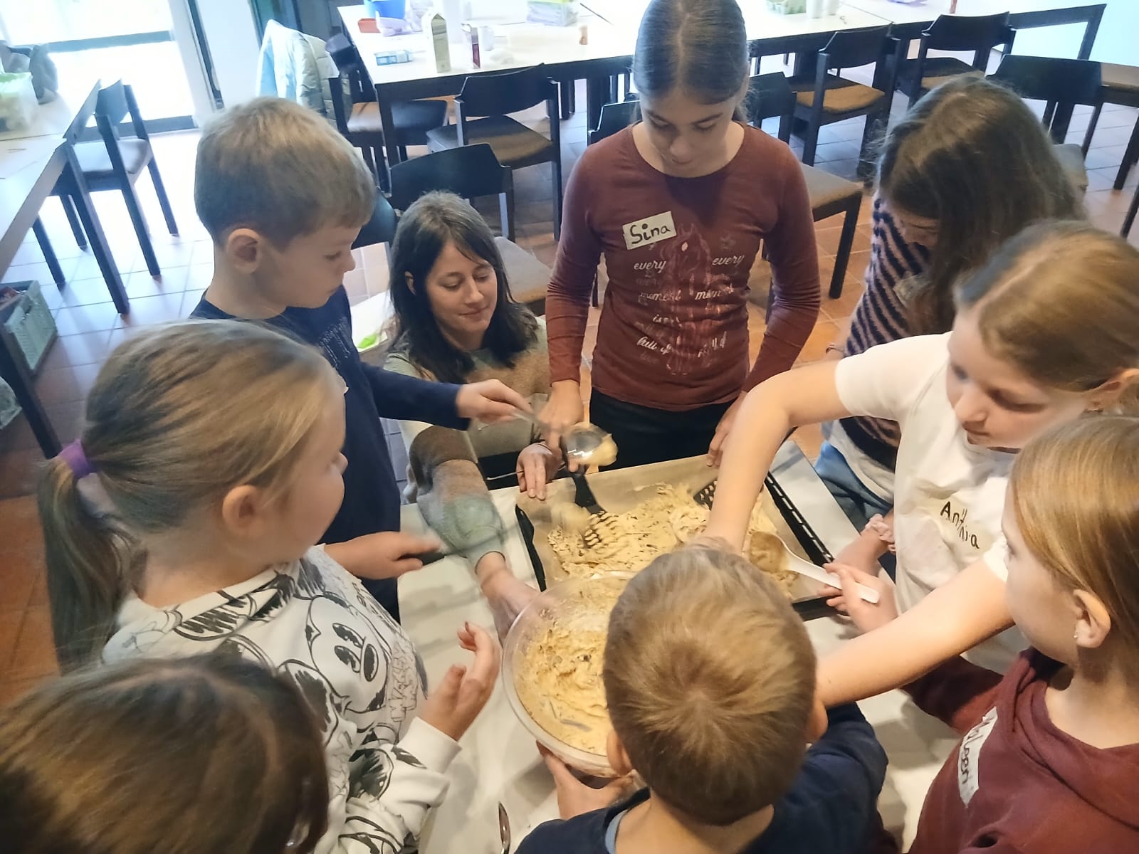 ALSFELD (ol). Beim Bibelkuchen-Backen des Katholischen Jugendbüros Alsfeld und der Pfarrei St. Peter und Paul Lauterbach entdeckten elf Kinder am Samstag, den 15. November, anhand verschiedener Bibelstellen die benötigten Zutaten für ihren Kuchen. Über Spiele wie Montagsmaler, Zettel-Suchspiele oder Buchstabensalat fanden sie Rosinen, Mehl, Feigen und mehr, bevor gemeinsam gebacken wurde. Nach einer Bewegungszeit an der frischen Luft ließen sich die Kinder ihren selbst gebackenen Kuchen, serviert mit Eis, schmecken.