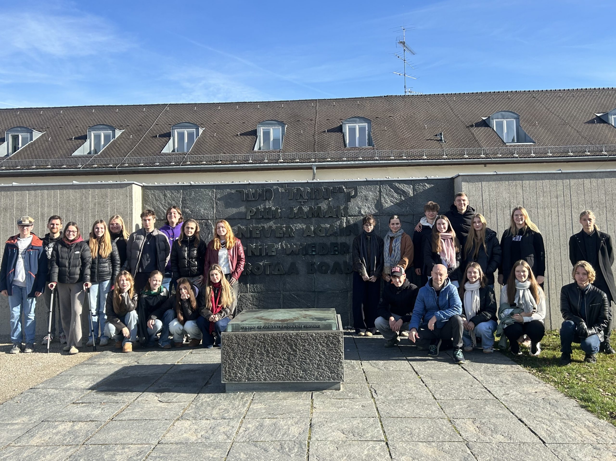 Schülerinnen und Schüler der Klasse 10, der E-Phase und der Q3 der Alexander-von-Humboldt-Schule nahmen im Rahmen eines deutsch-tschechischen Kooperationsprojekts unter der Organisation und Begleitung von Thomas Dersch und Laura Decher an einer Exkursion zur KZ-Gedenkstätte Dachau teil. Mit dabei waren auch Schülerinnen und Schüler aus der Tschechischen Republik. Solche Begegnungen von tschechischen und deutschen Jugendlichen fördern der Deutsch-Tschechische Jugendfonds und Tandem, das Koordinierungszentrum Deutsch-Tschechischer Jugendaustausch, heißt es in der Pressemitteilung der AvH.