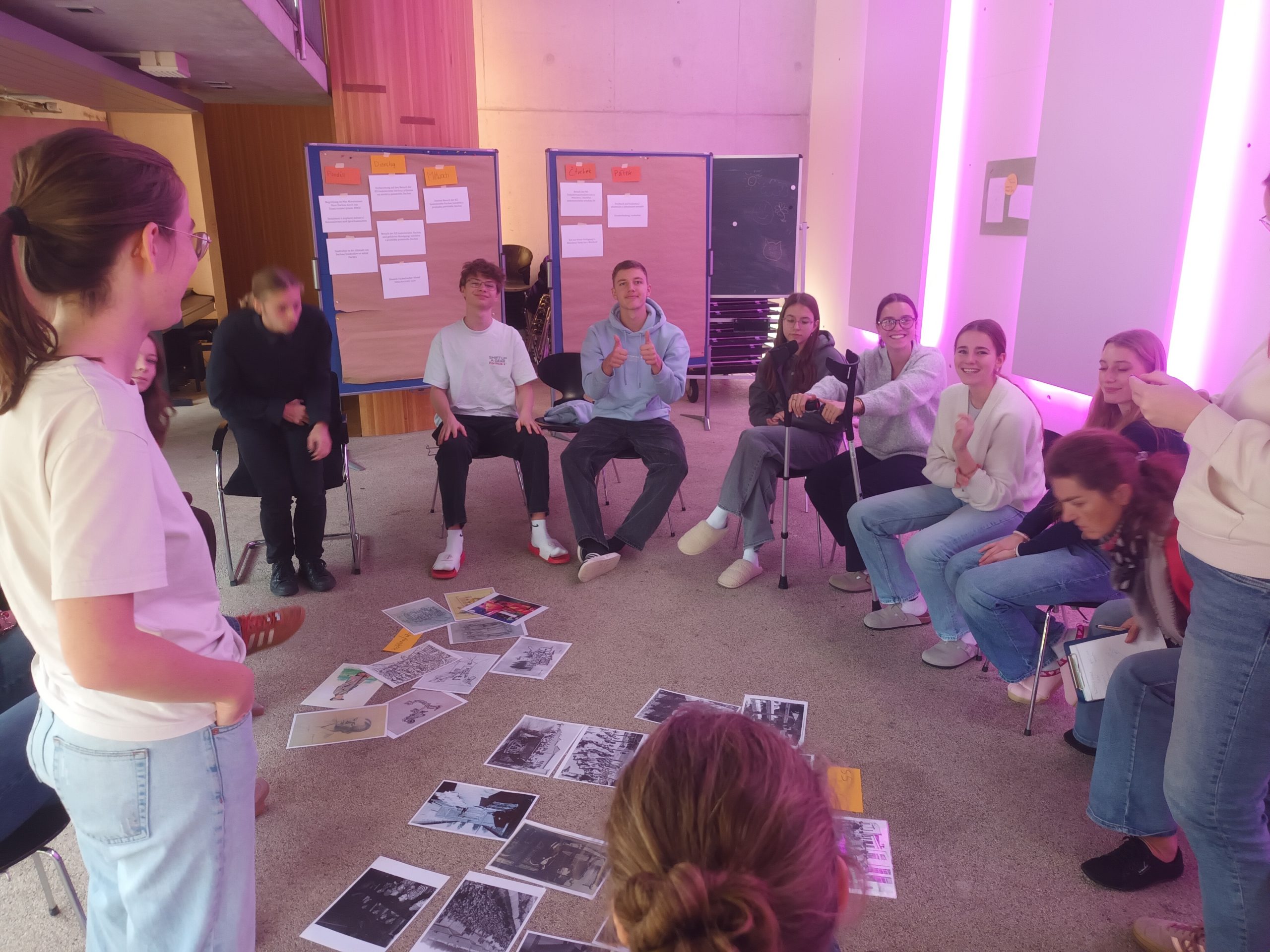 Den ersten Besuch der KZ-Gedenkstätte bereiteten die Teilnehmenden vor, indem sie sich mit den Konzentrationslagern der Nationalsozialisten, deren Häftlingseinteilung sowie deren Propagandanutzung auseinandersetzten. Nachmittags erfolgte der erste Besuch des ehemaligen Konzentrationslagers. Die Eindrücke vor Ort konnten die Jugendlichen im Rahmen einer anschließenden gemeinsamen Reflexion besprechen – auch hier bestimmte der gute Austausch die Atmosphäre. Am nächsten Tag konnten die Teilnehmenden die KZ-Gedenkstätte größtenteils eigenständig erkunden und intensiv selbstgewählte Aspekte im Museum erarbeiten. Auch ein zusammenfassender, halbstündiger Kinofilm gehörte zum Programm. Am Nachmittag hatten die Schülerinnen und Schüler die Wahl zwischen einem Workshop im Max-Mannheimer-Haus und dem Besuch des ehemaligen SS-Erschießungsplatzes für sowjetische Kriegsgefangene in Hebertshausen. Außerdem erarbeiteten sie selbstgewählte Biografien von Häftlingen, unter anderem Max Mannheimer, und präsentierten diese der Gruppe. Gerade die Auseinandersetzung mit den Biografien, den Namen und Lebenslinien der Betroffenen, verdeutlichte einmal mehr das Unvorstellbare.
