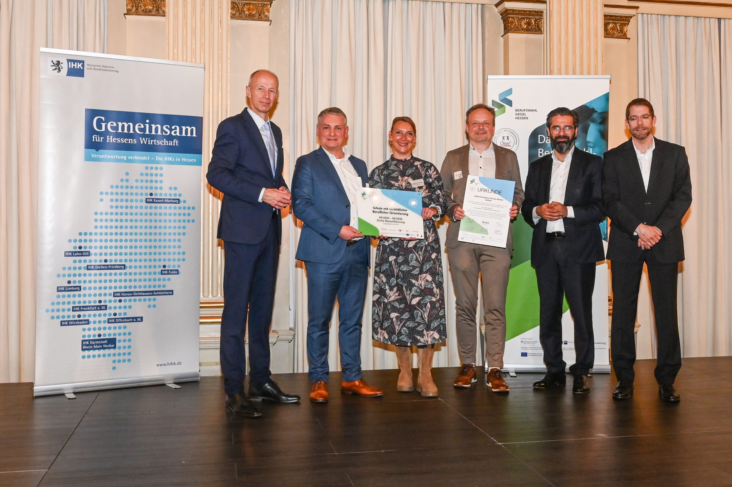 Als eines von lediglich zwanzig allgemeinbildenden Gymnasien in Hessen wurde die Albert-Schweitzer-Schule nun wieder als Siegelschule ausgezeichnet – seit der ersten erfolgreichen Bewerbung im Jahr 2014 bereits zum dritten Mal, so heißt es in der Pressemitteilung der Alsfelder Schule. Schulleiter Christian Bolduan war zur feierlichen Übergabe des Siegels vor wenigen Tagen mit Barbara Kreuter-Hiller (BSO-Koordinatorin für die Oberstufe) und Michael Rausch (Berufsberater der Bundesagentur für Arbeit an der Albert-Schweitzer-Schule) nach Wiesbaden gereist. Antje Stein, BSO-Koordinatorin der Mittelstufe, war verhindert.