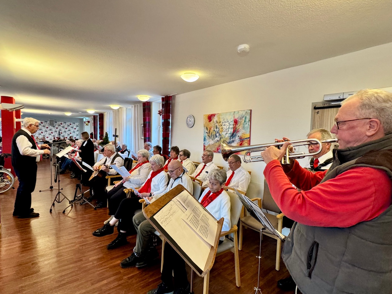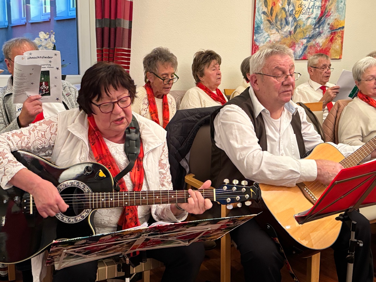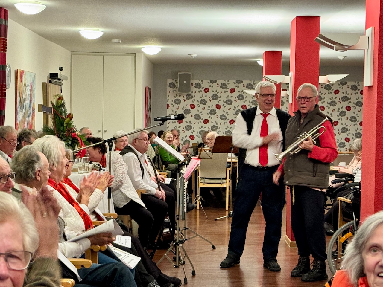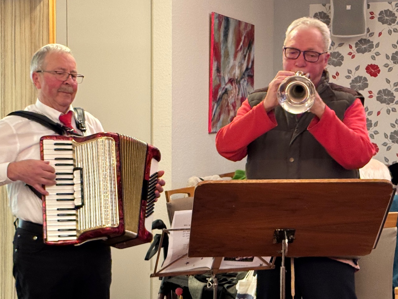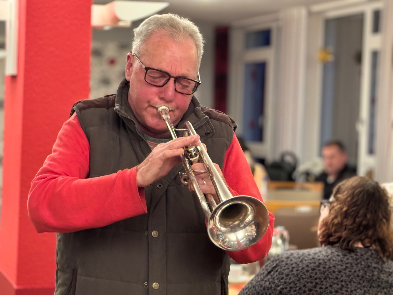 Musikalischer Mittelpunkt waren die Sonntagssinger selbst – und sie kamen stärker als angekündigt. Statt der erwarteten 30 Sängerinnen und Sänger erschienen fast 40. Chorkoordinator Walter Tenschert zeigte sich bewegt: „Damit hatte ich wirklich nicht gerechnet.“ Getragen wurde der Chor von Michael Geisel an der Trompete, Tenschert am Akkordeon sowie Margot Naumann und Joachim Friedrich an den Gitarren. Unter Gonders Leitung entstand ein Ensembleklang, der an eine gut geführte Werkstatt erinnerte: Jeder Einsatz saß, jede Pause hatte Gewicht, jede Strophe trug die Handschrift eines Chores, der sein Ehrenamt wie ein handwerkliches Gut pflegt.