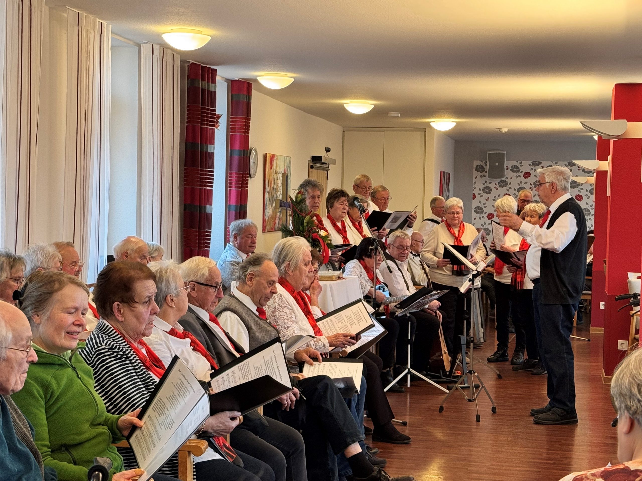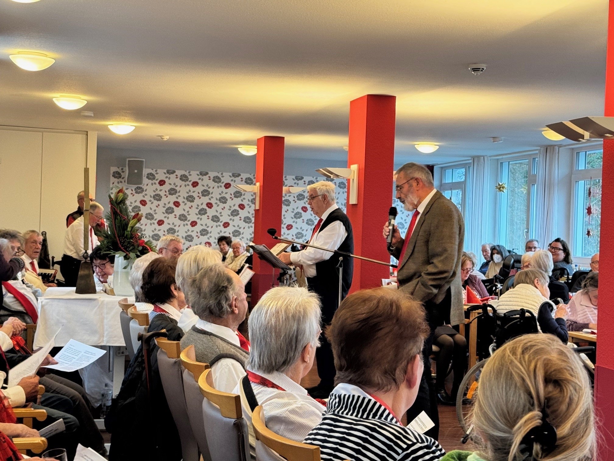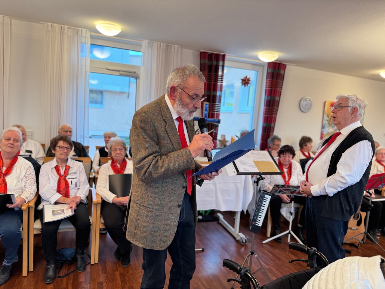 Für einen weiteren Moment der Sammlung sorgte Bernd Jung aus dem Kreis der Sänger. Mit klarer Stimme rezitierte er Passagen aus Otto Reuters Gedicht „Immer weiter… Ein Lebensbild“. Die Verse über Lebenswege und Generationen klangen nach und öffneten Erinnerungsräume, die im Saal spürbar wurden.