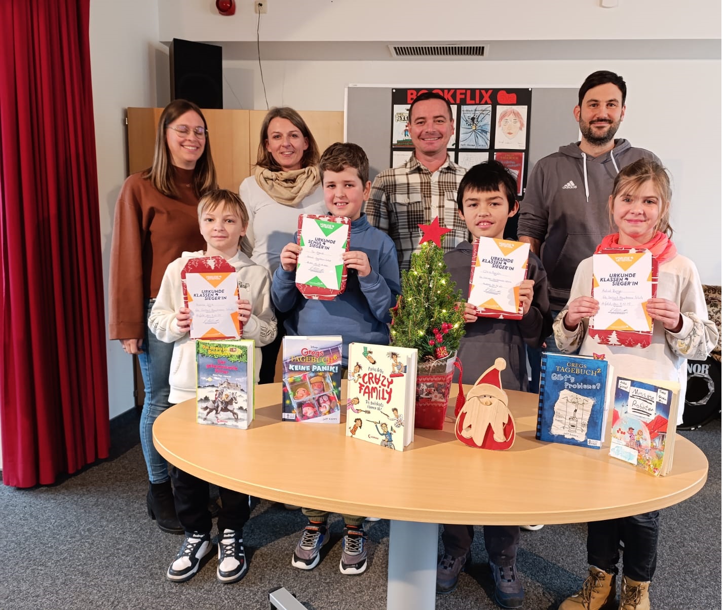 Neben der Vorstellung und Präsentation ihrer Bücher erarbeiteten die Sechstklässlerinnen und Sechstklässler kreative „Bookflix“-Beiträge, die nun in der Schulbücherei ausgestellt werden können und andere Kinder und Jugendliche zum Lesen motivieren sollen. Innerhalb der Klassen wurden anschließend jeweils zwei Teilnehmende für die nächste Runde und damit den Schulentscheid bestimmt. Für die Klasse 6a traten Tim Schmitt und Chris Rasch an und für die 6b Rahel Berger und Nikita Wirz.