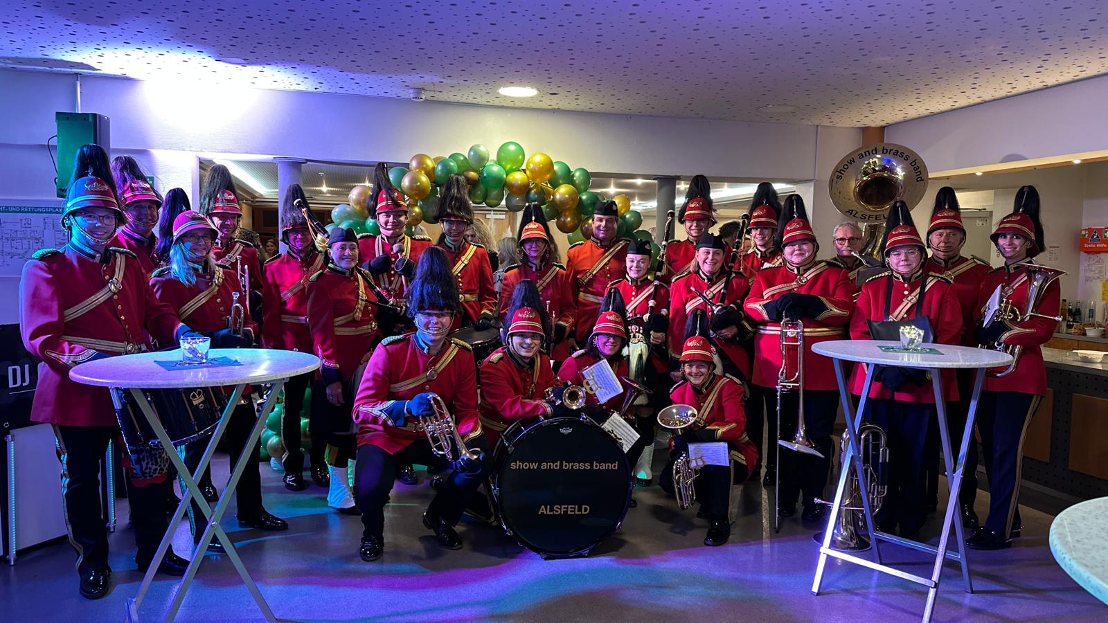 ALSFELD/LEOPOLDSHAFEN (ol). Bei der Jubiläumsfeier des Reitvereins Eggenstein sorgte die show and brass band Alsfeld am Samstag, den 29. November für ein stimmungsvolles Musikprogramm in der festlich geschmückten Rheinhalle Leopoldshafen. Die Musikerinnen und Musiker präsentierten eine Mischung aus traditioneller Blasmusik, modernen Arrangements und Dudelsackklängen und erhielten langen Applaus.
