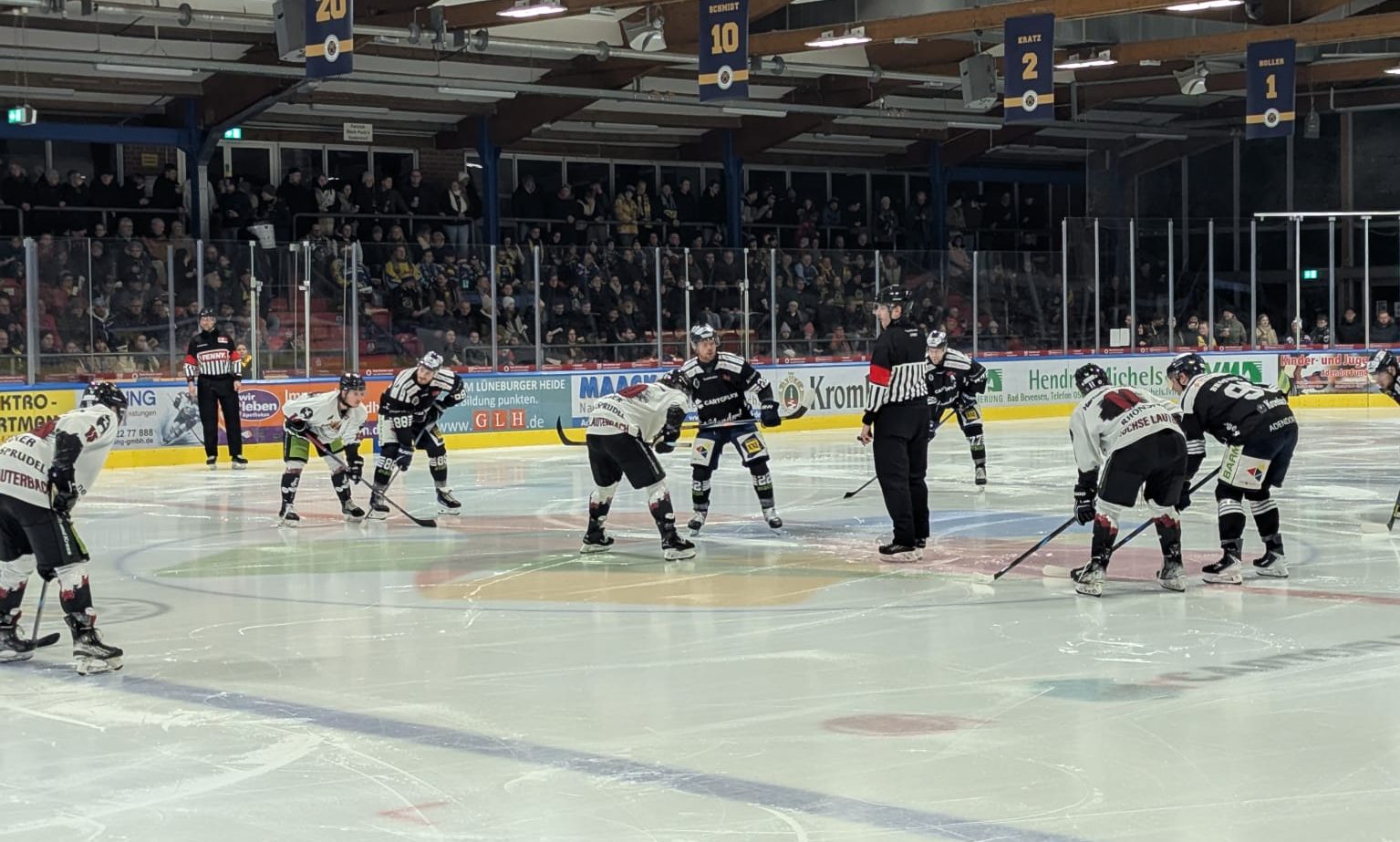 Die Luchse erwischten einen perfekten Start. Bereits nach 24 Sekunden traf Matyas Welser, der nach längerer Verletzungspause sein Comeback feierte, zur frühen Führung. Zwar war Adendorf phasenweise spielbestimmend, dennoch zeigte Lauterbach von Beginn an, dass man hier etwas Zählbares mitnehmen wollte. In der 8. und 11. Minute drehten Gerartz und Ahlgren zunächst die Partie zugunsten der Gastgeber, ehe erneut Welser kurz vor der ersten Drittelpause zum 2:2 ausglich.
