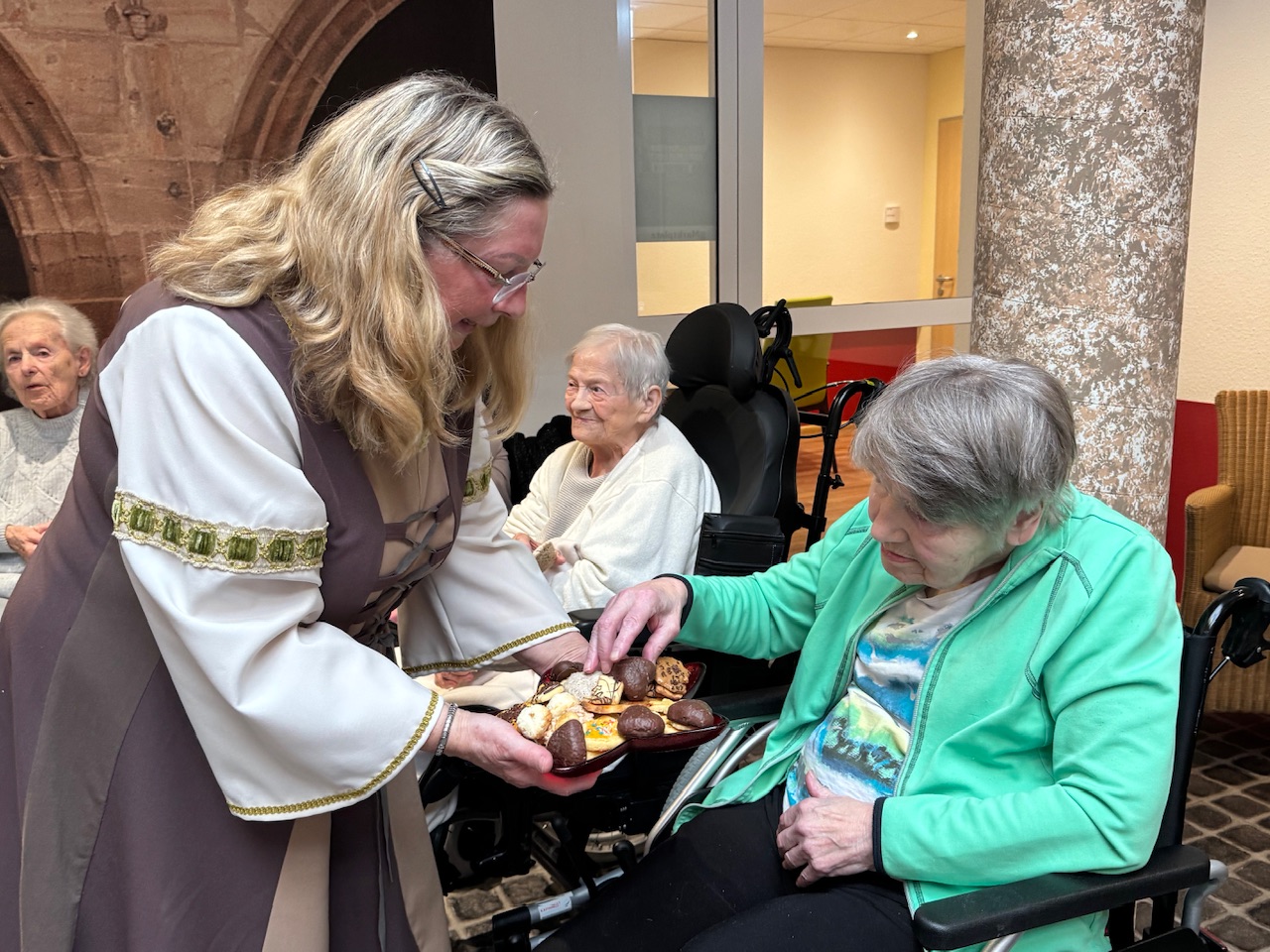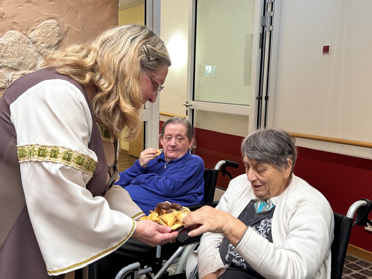 Silvia Völker erzählte in den Zimmern kurze, angepasste Passagen des Märchens – manchmal nur Bilder, manchmal ein Satz, der genau passte. Luis und das Team reichten Plätzchen, hielten Hände, sangen ein paar Takte des Liedes. Märchen wurden hier nicht konsumiert, sondern geteilt – in einem Tempo, das jeder Mensch mitgehen konnte.