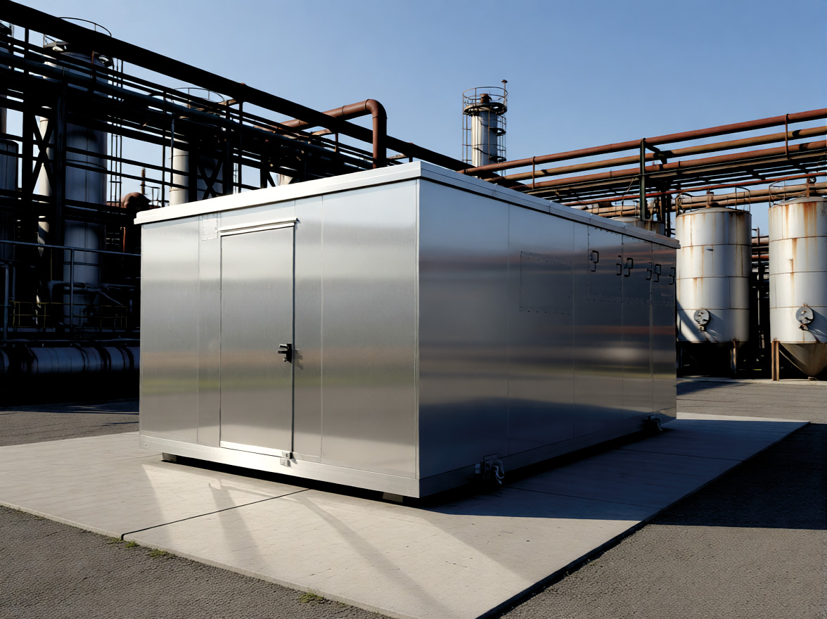 Der Aufbau besteht aus einer doppelschaligen Edelstahlkonstruktion mit Mineralwoll-Isolierung. Damit entstehen stabile Temperaturzonen für den Einsatz sensibler Mess- und Analysegeräte. Rohrdurchführungen im Dach und in den Seitenwänden ermöglichen die optimierte Einbindung in bestehende Leitungssysteme. Die resultierenden kurzen Leitungswege verbessern die Aussagekraft der Messwerte.