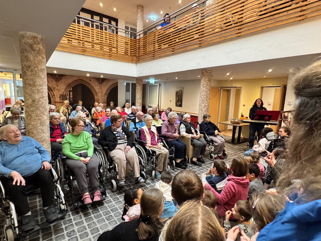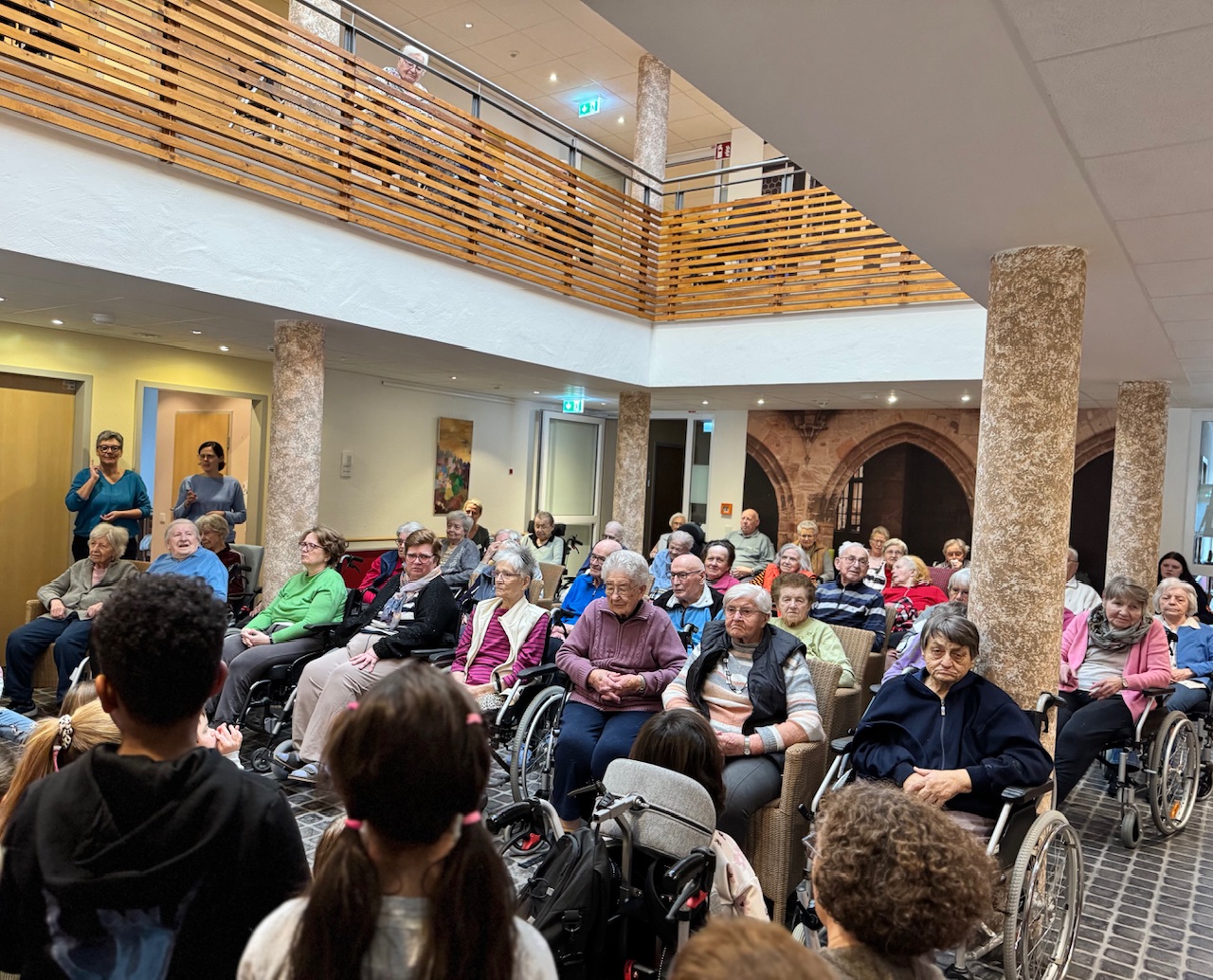 Zum Abschluss sangen Kinder und Bewohner gemeinsam „In der Weihnachtsbäckerei“. Die Melodie war vertraut, die Bewegungen einfach. Stimmen mischten sich, Takte verschwammen. Perfektion spielte keine Rolle. Entscheidend war das gemeinsame Erleben.