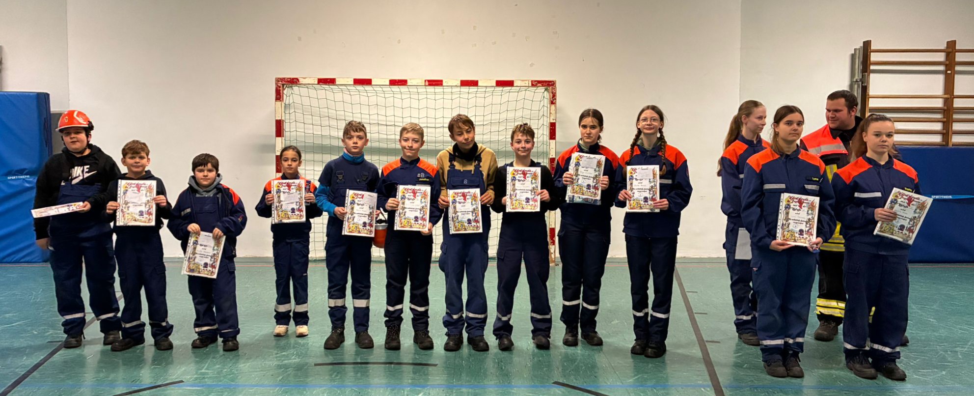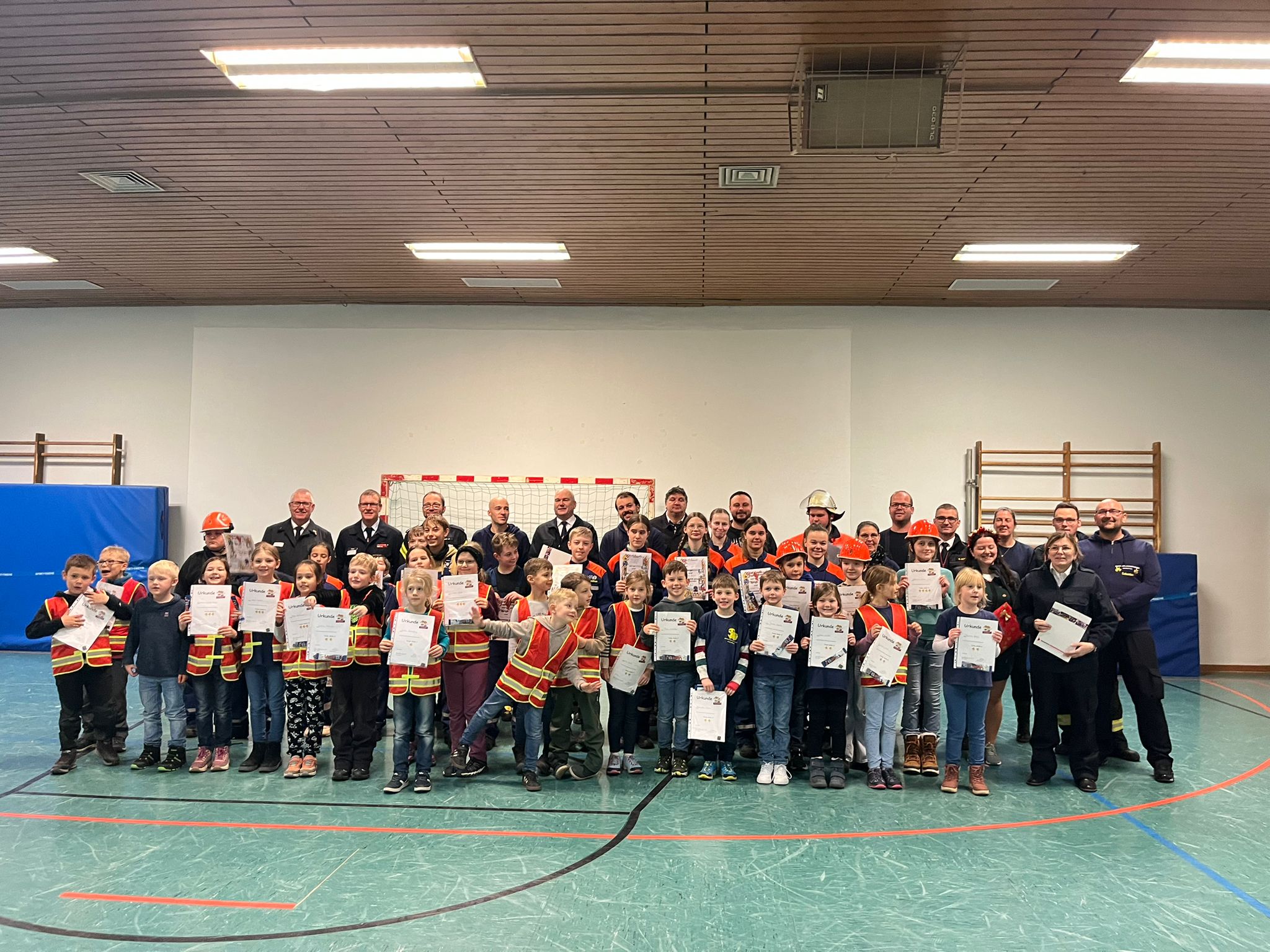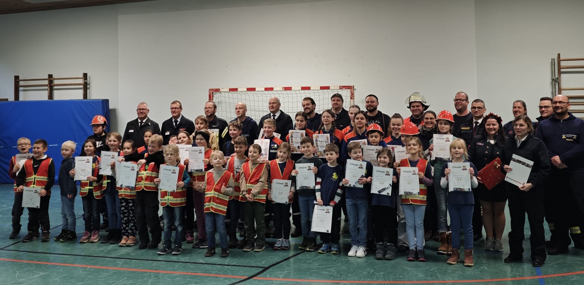 Jahresabschluss mit Abnahme von Tatze und Jugendflamme sowie Verleihung der FlorianmedailleAuszeichnungen und Ehrungen bei der Kinder- und Jugendfeuerwehr Antrifttal