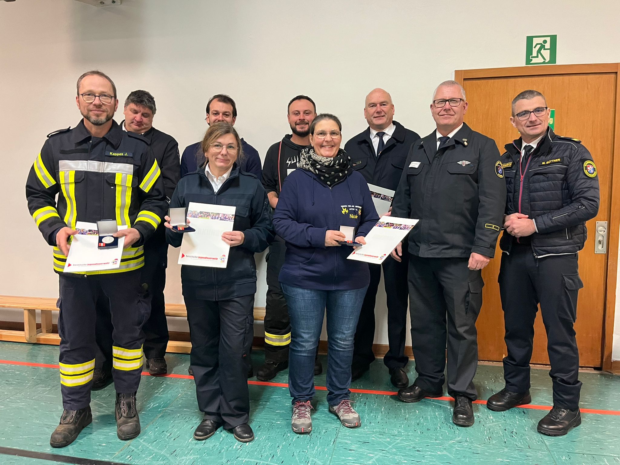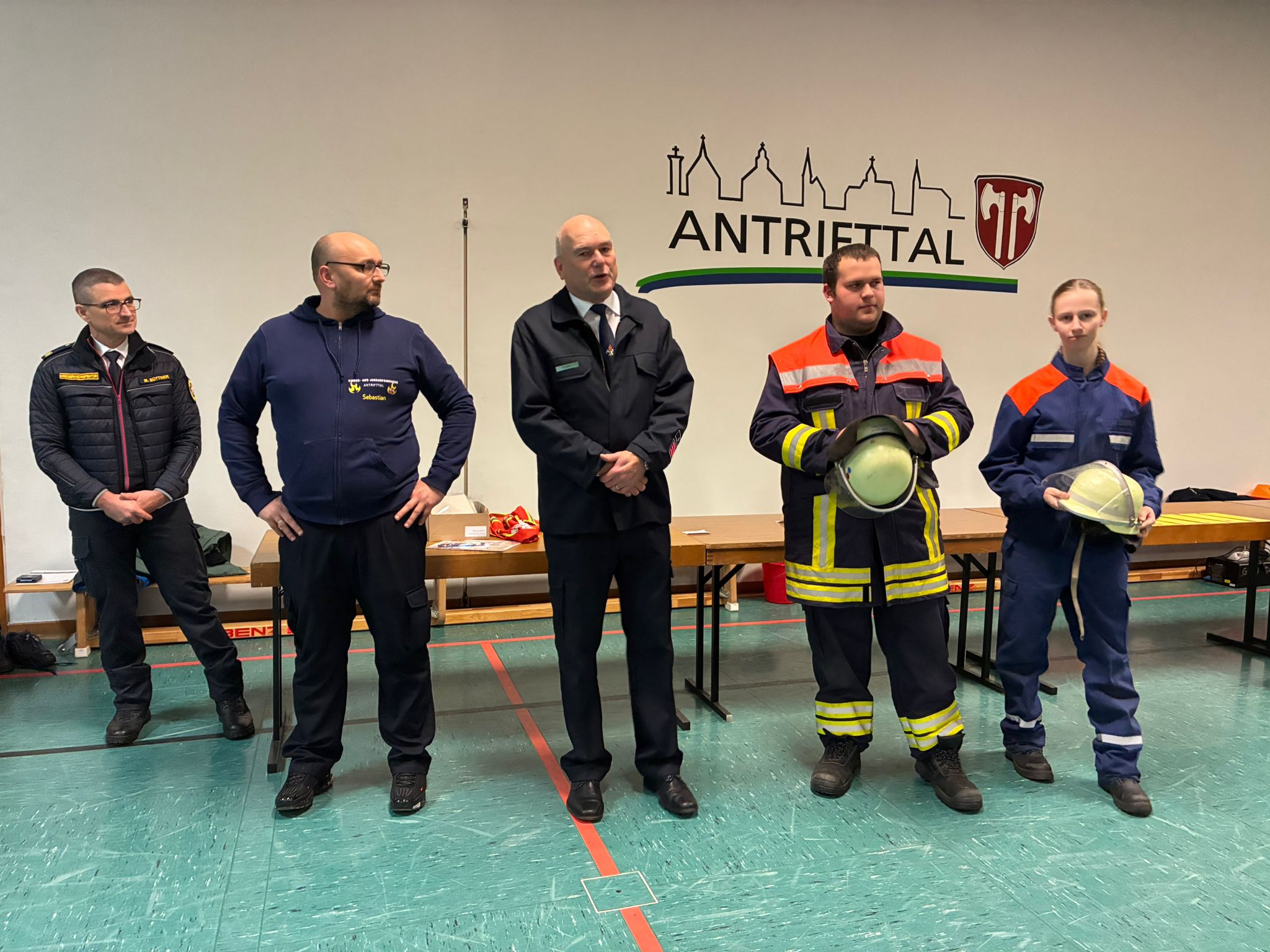 Ein weiteres Highlight der Veranstaltung war die Ehrung besonders engagierter Feuerwehrangehöriger: Zwei Wehrführer sowie sechs Jugend- und Kinderfeuerwehrwarte der Freiwilligen Feuerwehr Antrifttal wurden mit der Florianmedaille der Deutschen Jugendfeuerwehr in Bronze und Silber ausgezeichnet. Die Ehrung für ihr jahrelanges, herausragendes Engagement in der Jugendarbeit erfolgte durch den Kreisjugendfeuerwehrwart Jörg Blankenburg gemeinsam mit Kreisbrandinspektor Marcel Büttner.