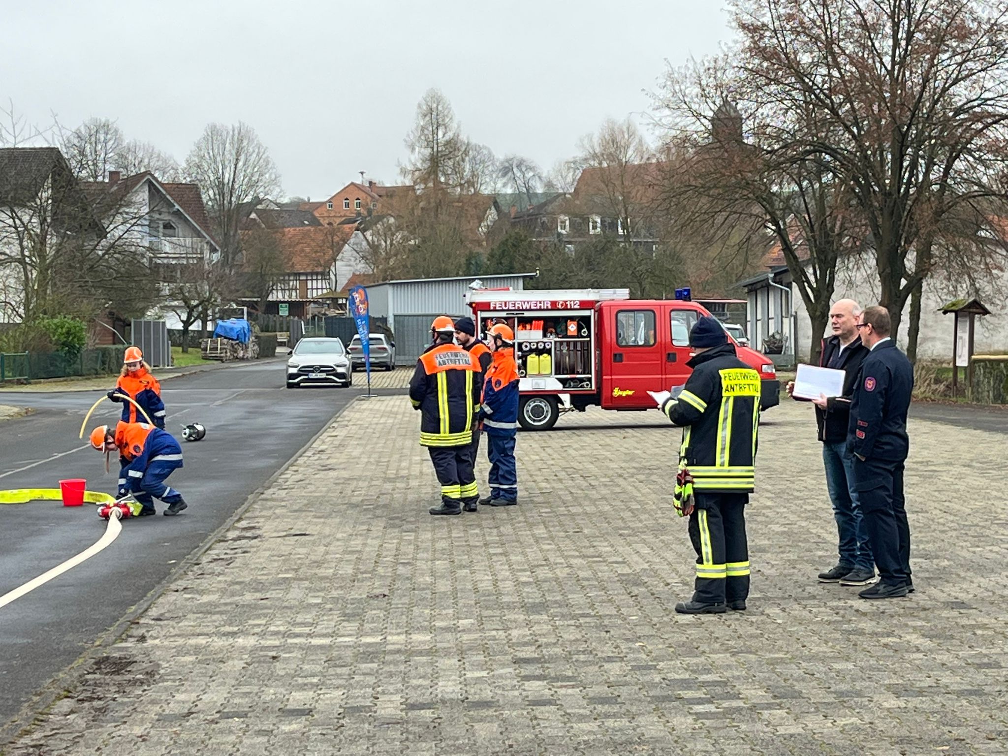 Unter den Augen von Bürgermeister Dietmar Krist, dem Kreisbrandinspektor des Vogelsbergkreises Marcel Büttner, Mark Seim als Vertreter der Kreisjugendfeuerwehr sowie dem Gemeindejugendfeuerwehrwart Sebastian Schwarzburg, der für die gesamte Organisation und Durchführung der Veranstaltung verantwortlich zeichnete, traten insgesamt 50 Kinder und Jugendliche im Alter von 6 bis 17 Jahren an.