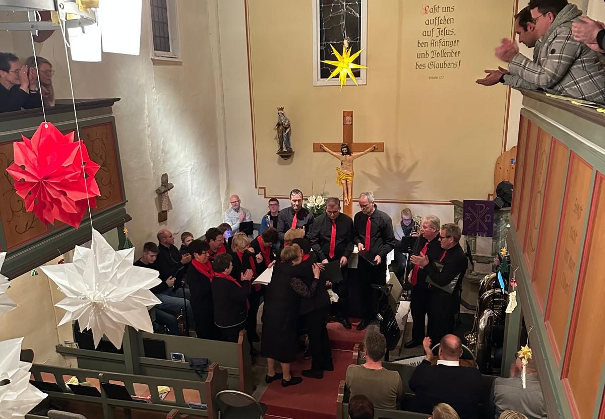 So wurde das Adventssingen zu einem Abend mit vielen Ebenen: Freude über das Wiedergewonnene, Dank für das Geleistete und die Zuversicht, dass aus Abschied auch Neues wachsen kann. Am Ende standen der gemeinsame Segen und die Einladung, den Abend bei Gesprächen, Gebäck und Getränken ausklingen zu lassen. Die Kollekte des Gottesdienstes kam der noch nicht vollständig gedeckten Restaurierung des Kruzifixes zugute.