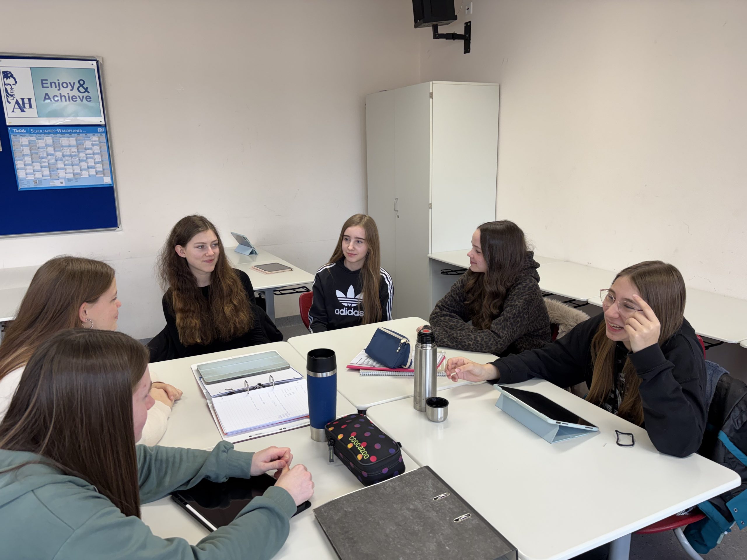 Demokratie im Alltag griffen Klassen der Sekundarstufe I breit auf. Eine 7. Klasse arbeitete grundlegende Säulen der Demokratie heraus, übertrug Mitbestimmung auf den Schulalltag und übte Konsens- und Mehrheitsentscheidungen. In einer Klasse 5 ging es um die Basisfragen: „Was bedeutet Demokratie? Wo leben wir sie im Alltag? Welche Ziele verfolgt unsere Grundordnung?“ Die Kinder erkannten, dass demokratische Prozesse den Klassenalltag prägen – vom bunten Feedback über Abstimmungen bis zu gemeinsamen Entscheidungen. Einige Schülerinnen und Schüler entwickelten im Deutschunterricht eigene Fabeln, in denen sie heutige Werte und Merkmale des Lebens in einer Demokratie kreativ verarbeiteten. Ein „Bonbon-Spiel“ zeigte im Ethikunterricht der Klasse 10, wie notwendig Kooperation innerhalb einer Gemeinschaft ist. Gleichzeitig wurden unterschiedliche Gesellschaftsformen thematisiert und erfahrbar gemacht, wie schnell das Gleichgewicht zwischen Eigeninteresse und Gemeinwohl kippen kann.