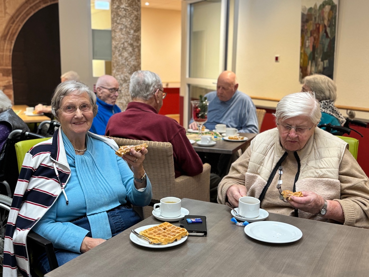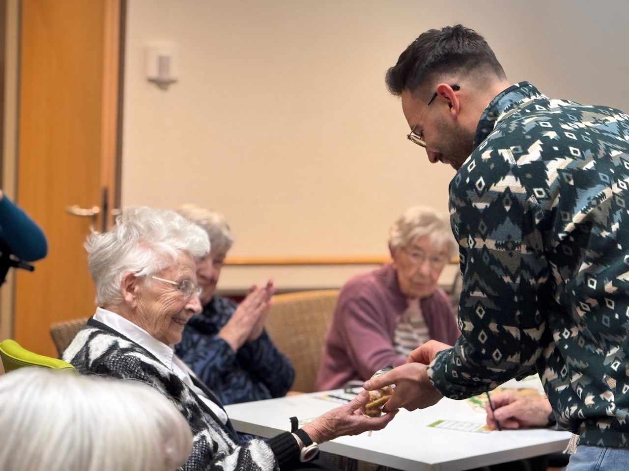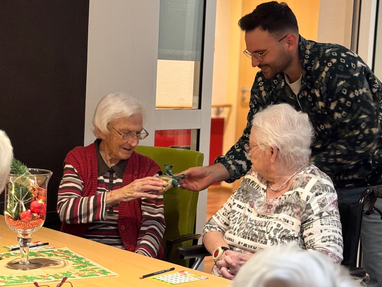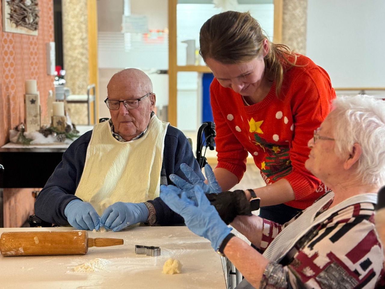 Zum Konzert passt eine Reihe generationenübergreifender Aktionen, die das Haus in der Adventszeit prägen. Am 12. Dezember kamen Mitglieder der Gemeinde, eine Landfrauengruppe, Familien und Kinder im Alter von zwei bis 13 Jahren mit Bewohnerinnen und Bewohnern zum Plätzchenbacken zusammen. Am 27. November folgte ein weiterer Backnachmittag mit Schülerinnen und Schülern der 7. Klasse der Gerhart-Hauptmann-Schule im Rahmen des Programms „Berufliche Orientierung“, pädagogisch begleitet von Jonas Mülot von der Erich-Kästner-Schule. Am 11. Dezember schloss ein Adventsbingo mit selbstgemachten Waffeln und Weihnachtsliedern die vorweihnachtliche Reihe ab.