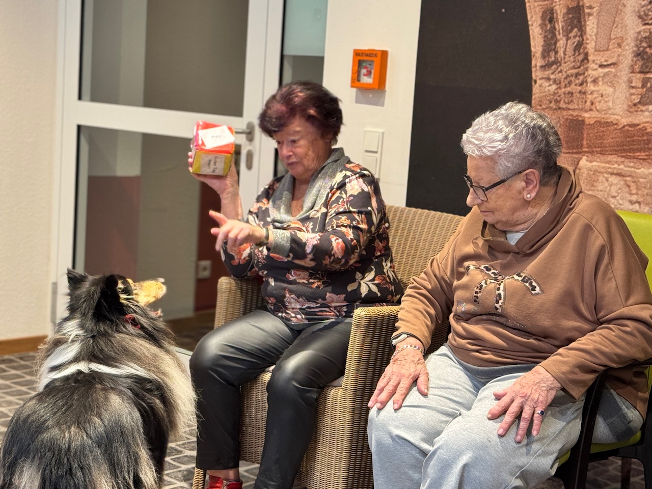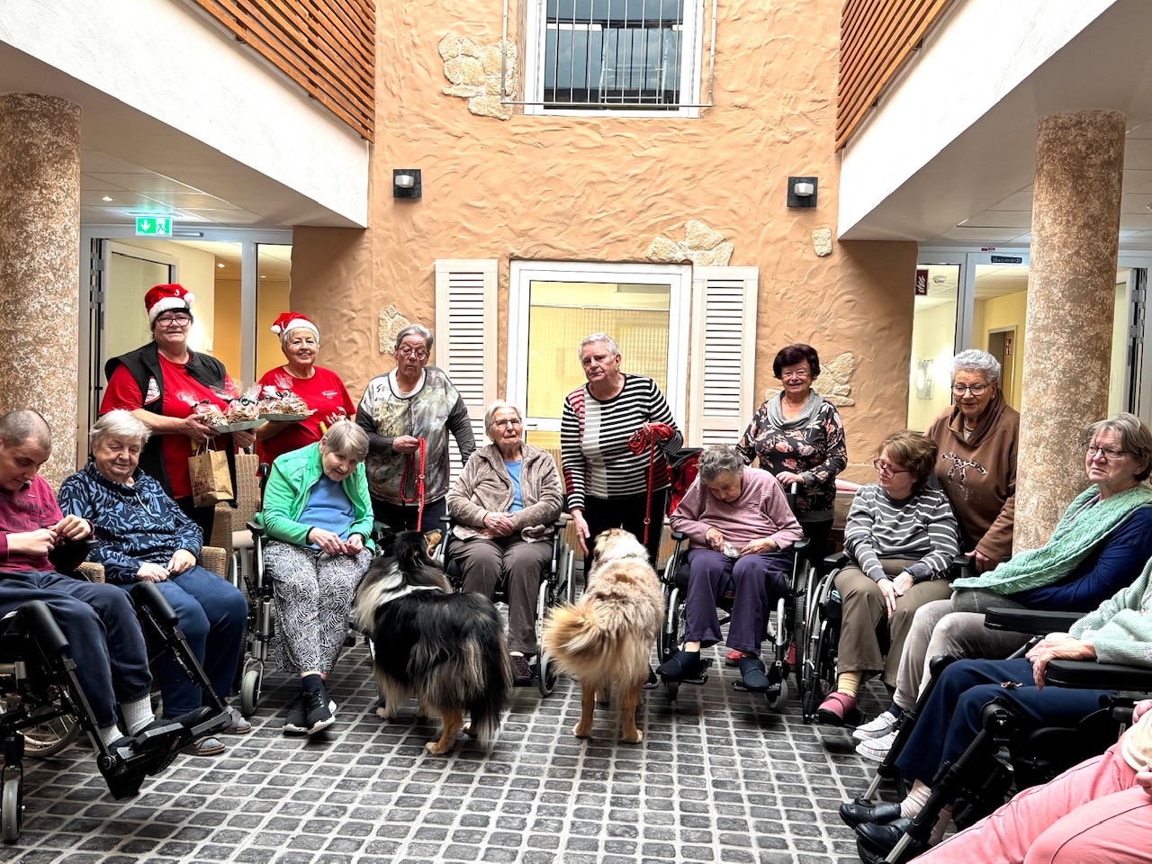 Die Therapiehunde wirken dabei nicht nur in Gruppenangeboten. Sie sind auch Brücken für Menschen mit eingeschränkter Mobilität oder erhöhtem psychosozialem Unterstützungsbedarf. Streicheln, Blickkontakt und kleine Bewegungsimpulse können Orientierung, Aktivierung und emotionale Stabilität unterstützen. Begleitet wurde der Besuch von einer gemeinschaftlichen Aktion: Bewohnerinnen und Bewohner sowie das Team des Betreuungsdienstes bereiteten im Vorfeld selbstgemachte, gesunde Hundeleckerlis vor.
