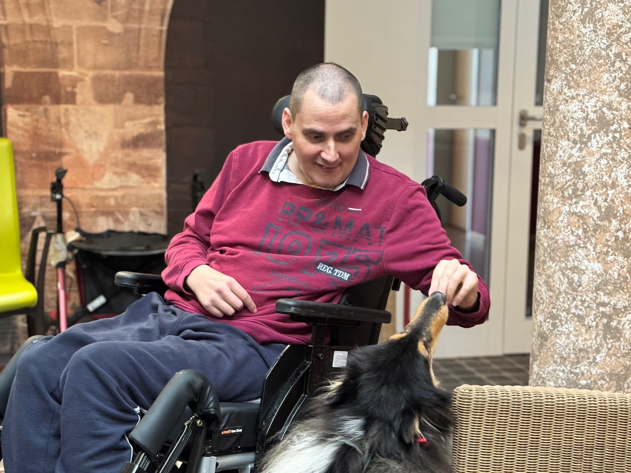 Einen besonderen Akzent setzte am 9. Dezember ein tiergestütztes Adventsprogramm. Zu Gast war der Verein Therapiehunde Osthessen unter der Leitung von Heike Leitsch. Mehrere Therapiehunde – darunter Ronja, Moki, Chelsea, Koko und Niko – besuchten Bewohnerinnen und Bewohner im Haus Stephanus. „Wir haben heute bewusst etwas Weihnachtliches vorbereitet“, sagte Leitsch. Zum Auftakt las sie eine kurze Weihnachtsgeschichte mit direktem Bezug zum Haus Stephanus. Danach entwickelten sich ruhige Begegnungen – im Gemeinschaftsraum und in den Zimmern.