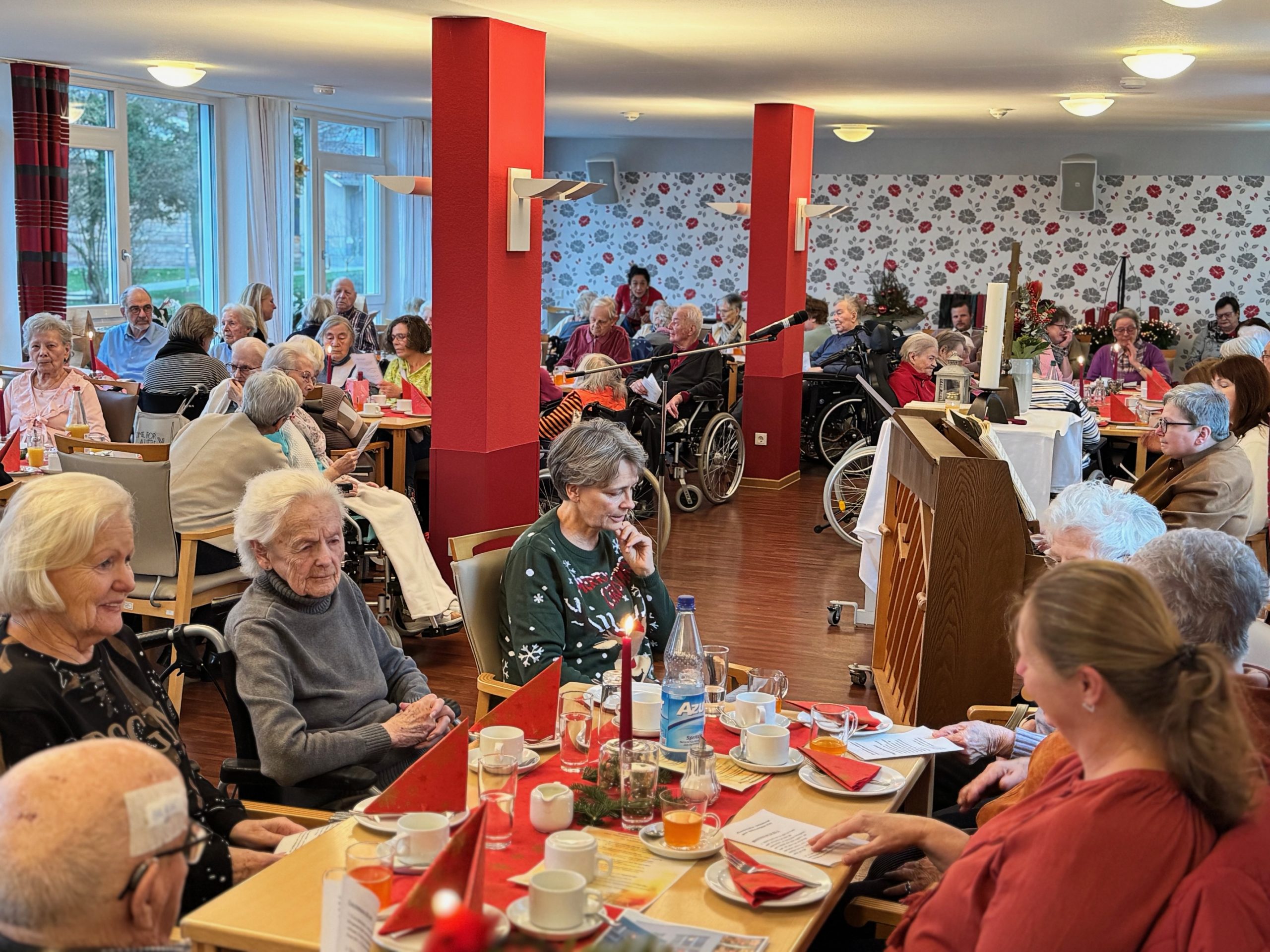 Rund 120 Bewohnerinnen und Bewohner, Angehörige und Gäste haben am 23. Dezember im Haus Stephanus gemeinsam Weihnachten gefeiert. Der Multifunktionsraum war nahezu vollständig besetzt. Einen Tag vor Heiligabend stand nicht das perfekte Fest im Mittelpunkt, sondern Nähe, Gemeinschaft und gegenseitiges Tragen, heißt es in der Pressemitteilung der Einrichtung.