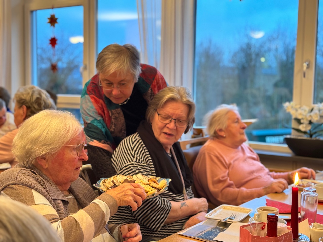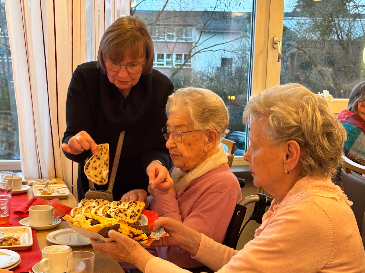 Die leisen Momente prägten den Nachmittag. „Es war wieder so schön“, sagte ein Bewohner. Eine Bewohnerin sprach von einer „richtigen Weihnachtsstimmung“. Ein spontaner Höhepunkt ergab sich, als eine Bewohnerin an diesem Tag Geburtstag hatte. Am Vormittag hatte sie mit Familie gefeiert, am Nachmittag mit der Hausgemeinschaft. Spontan sang der ganze Raum „Zum Geburtstag viel Glück“.