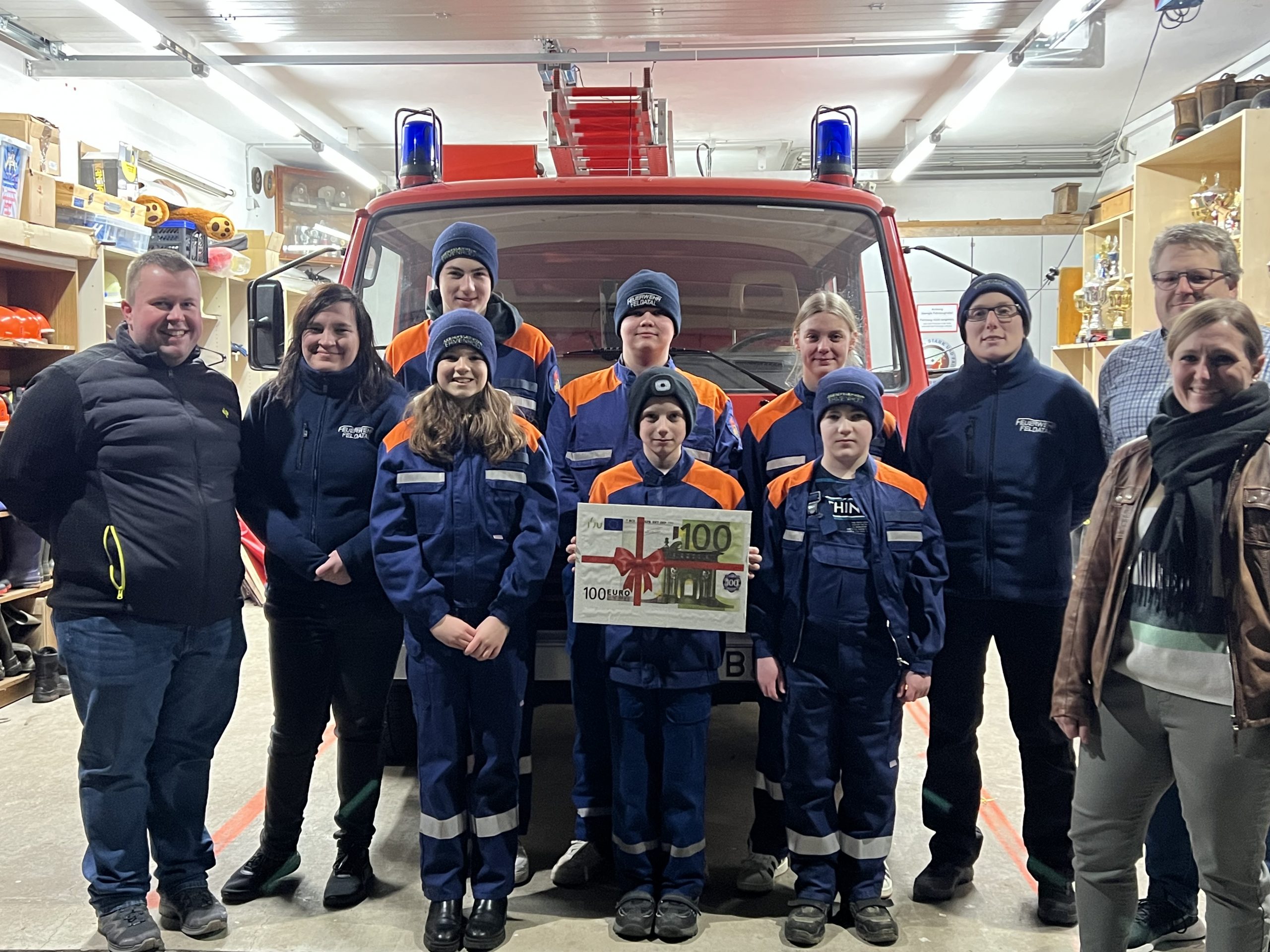 100 Euro aus Kalendererlös unterstützen erfolgreiche NachwuchsarbeitErste Spende aus dem Feldatal-Kalender an Jugendfeuerwehr Ermenrod übergeben