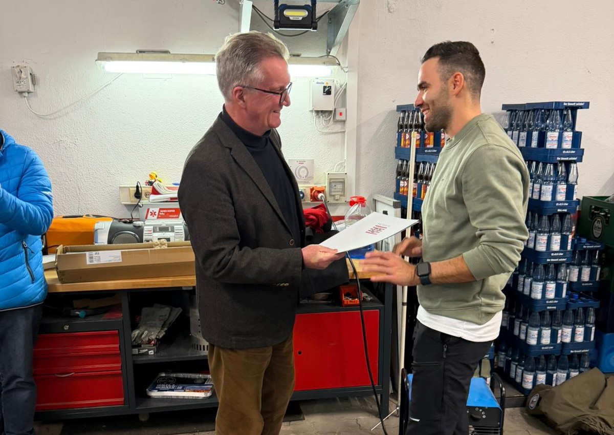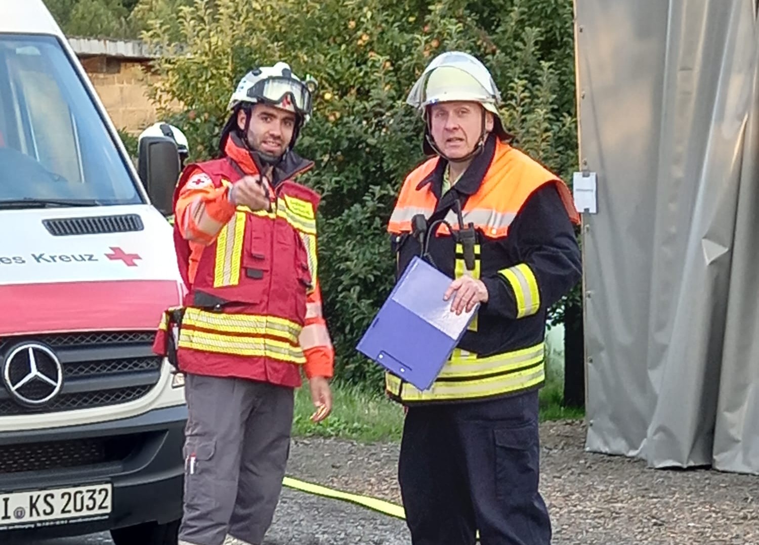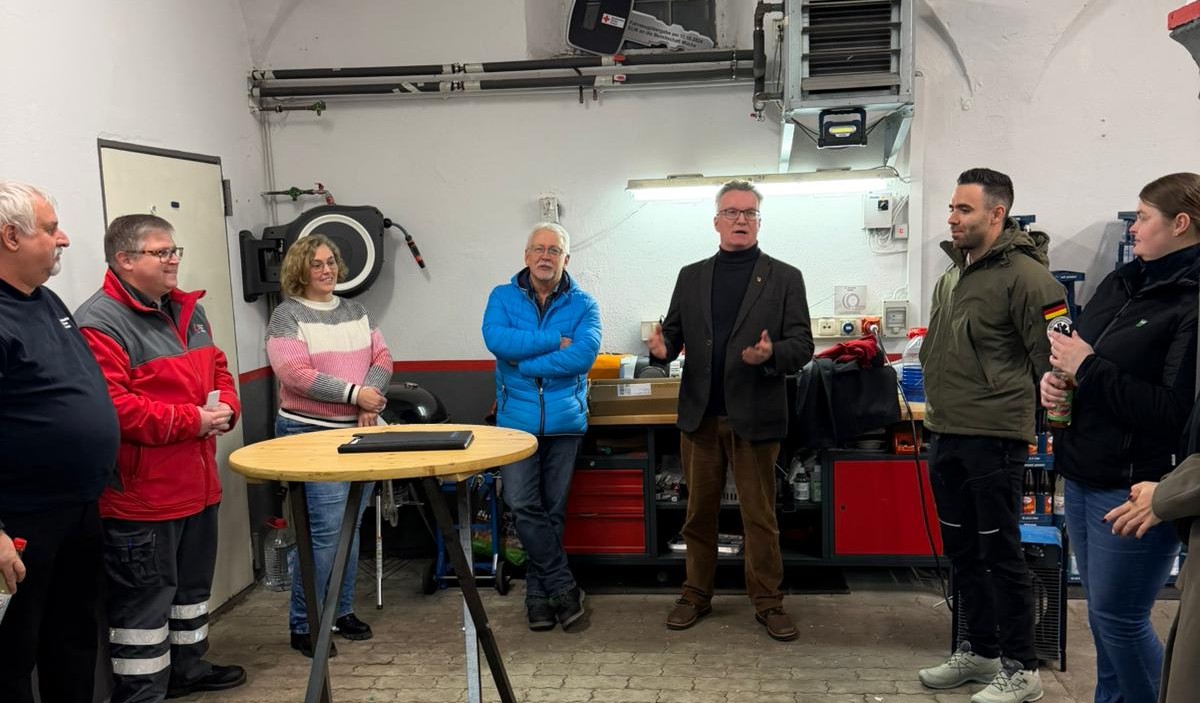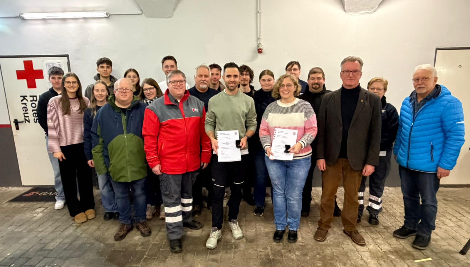 Die Verleihung kam für beide Geehrten völlig überraschend. Der angekündigte Besuch des Bürgermeisters war ursprünglich als reiner Informationsaustausch mit der Bereitschaftsleitung und den ehrenamtlichen Einsatzkräften vorgesehen. Entsprechend begann der Abend mit einer Begrüßung durch Ulf Immo Bovensmann, der den Bürgermeister willkommen hieß und über aktuelle Entwicklungen im DRK Mücke informierte.Dabei hob er unter anderem die lange Geschichte des Ortsvereins hervor: Das DRK Mücke wurde bereits 1937 gegründet – noch bevor die heutige Gemeinde Mücke ihren Namen erhielt – und wird im kommenden Jahr sein 90-jähriges Bestehen feiern. Aktuell engagieren sich 59 Ehrenamtliche im DRK Mücke, davon 46 in der Bereitschaft. Weitere Helferinnen und Helfer sind in der Kleiderkammer tätig, zudem besteht eine aktive Jugendrotkreuz-Gruppe.