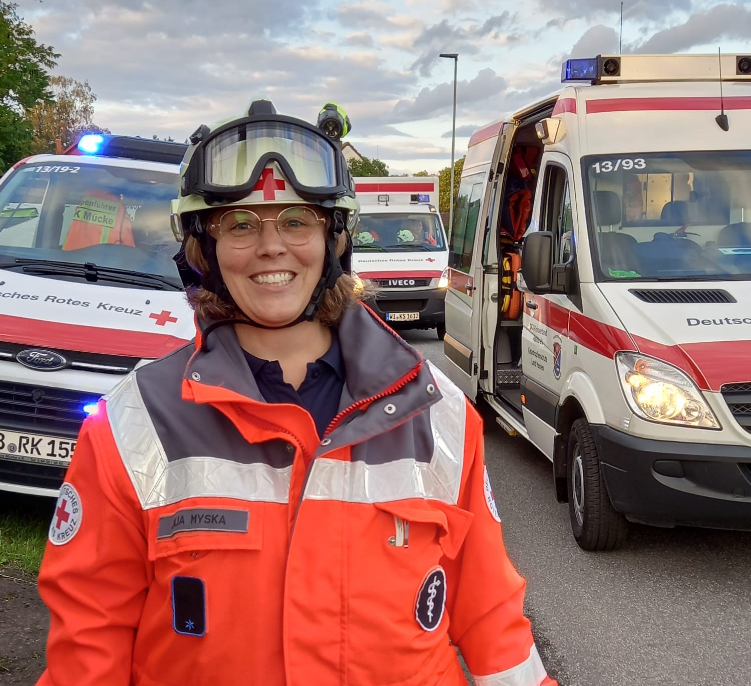 Neben ihrem Engagement als JRK-Gruppenleiterin ist sie seit einiger Zeit auch als Gruppenführerin im Katastrophenschutz sowie als Mitglied der Bereitschaftsleitung des DRK Mücke tätig. Dort bringt sie sich auf vielfältige Weise ein – ein besonderer Schwerpunkt liegt in der Organisation von über 80 DRK-Terminen jährlich sowie in ihrer Arbeit innerhalb der Einsatzgruppe Drohne. Darüber hinaus setzt sie sich seit vielen Jahren gemeinsam mit dem DRK Mücke für die Nachwuchsarbeit der Feuerwehr Ruppertenrod ein und stärkt so die Zusammenarbeit beider Organisationen.