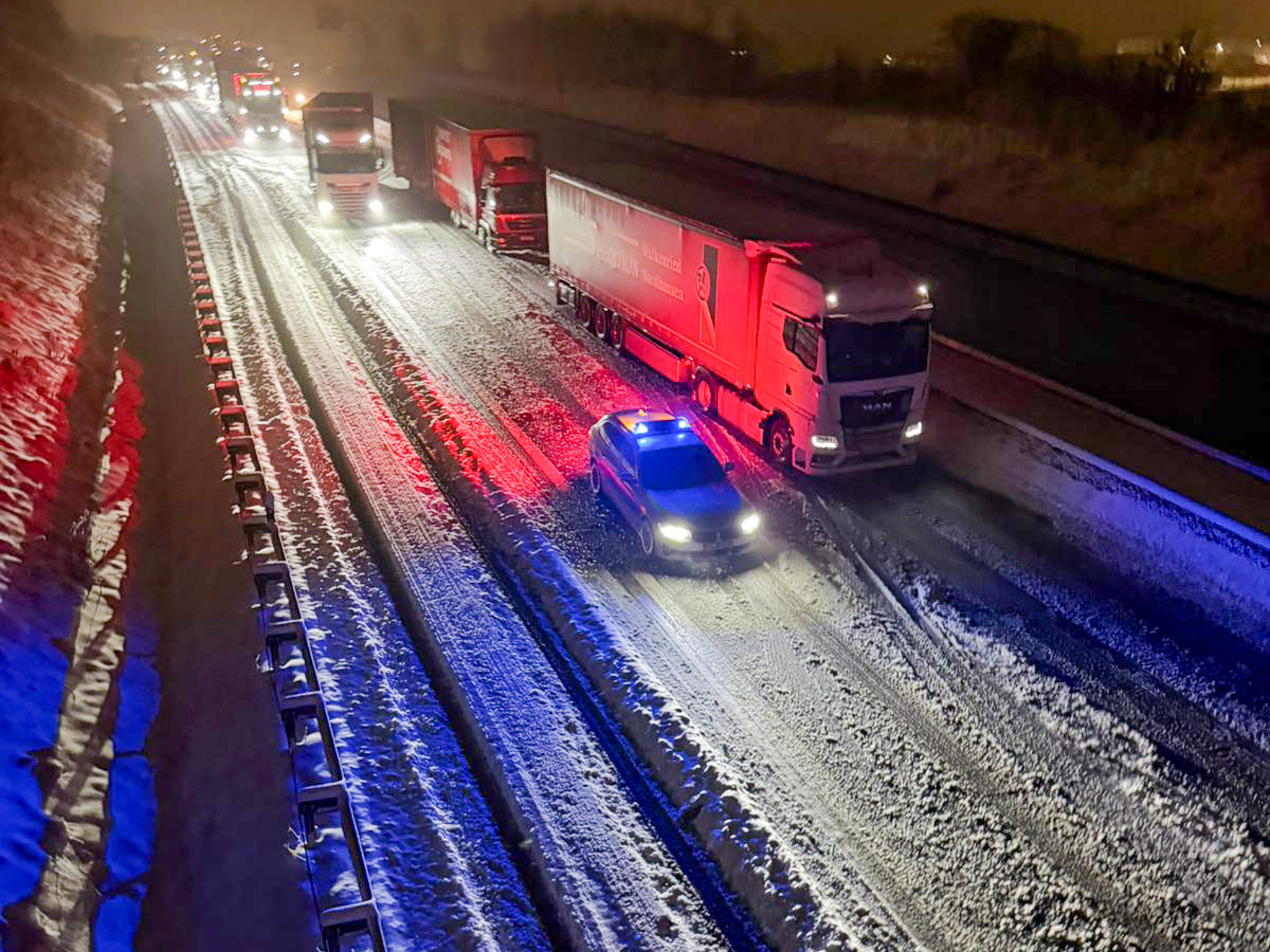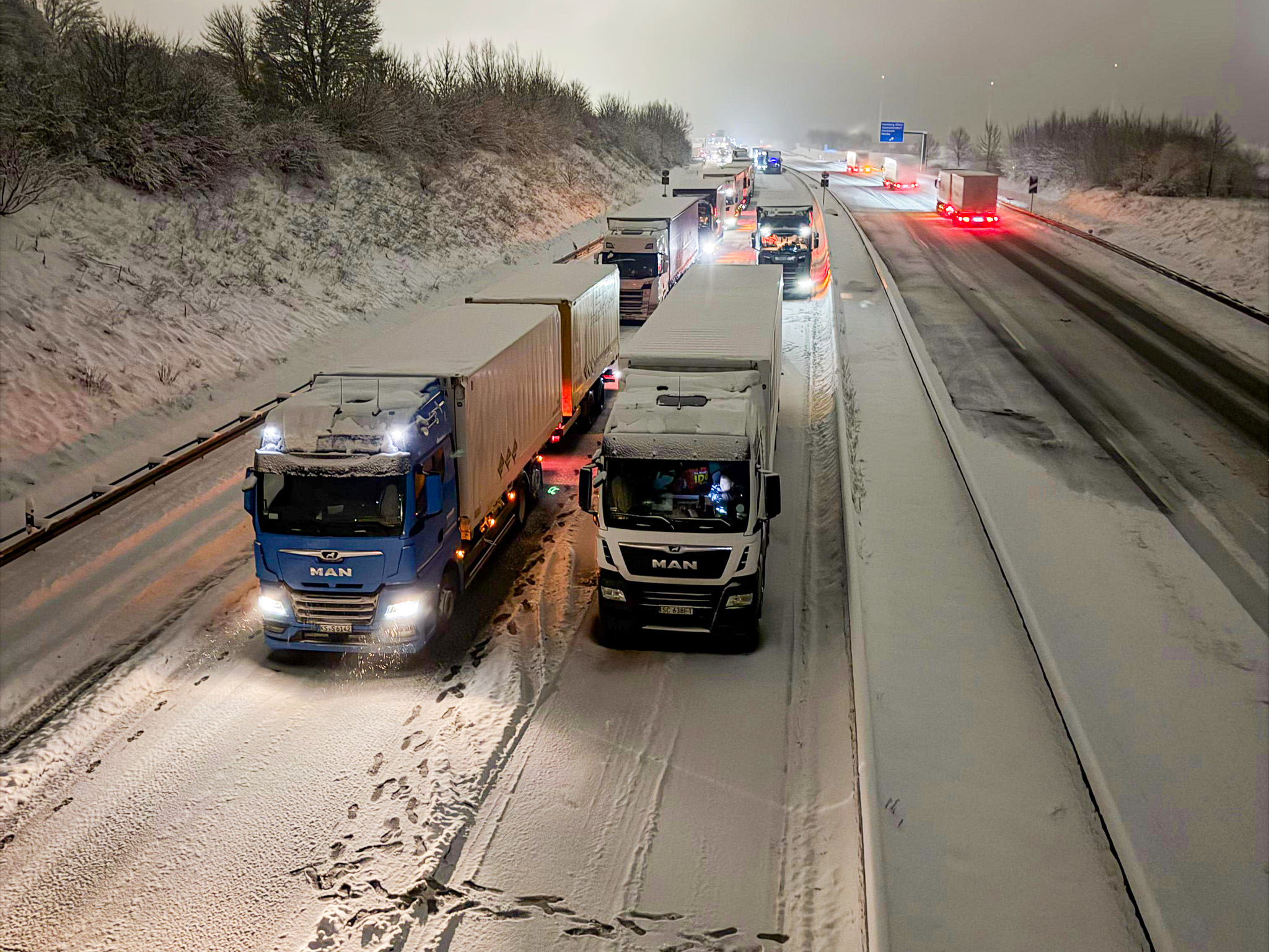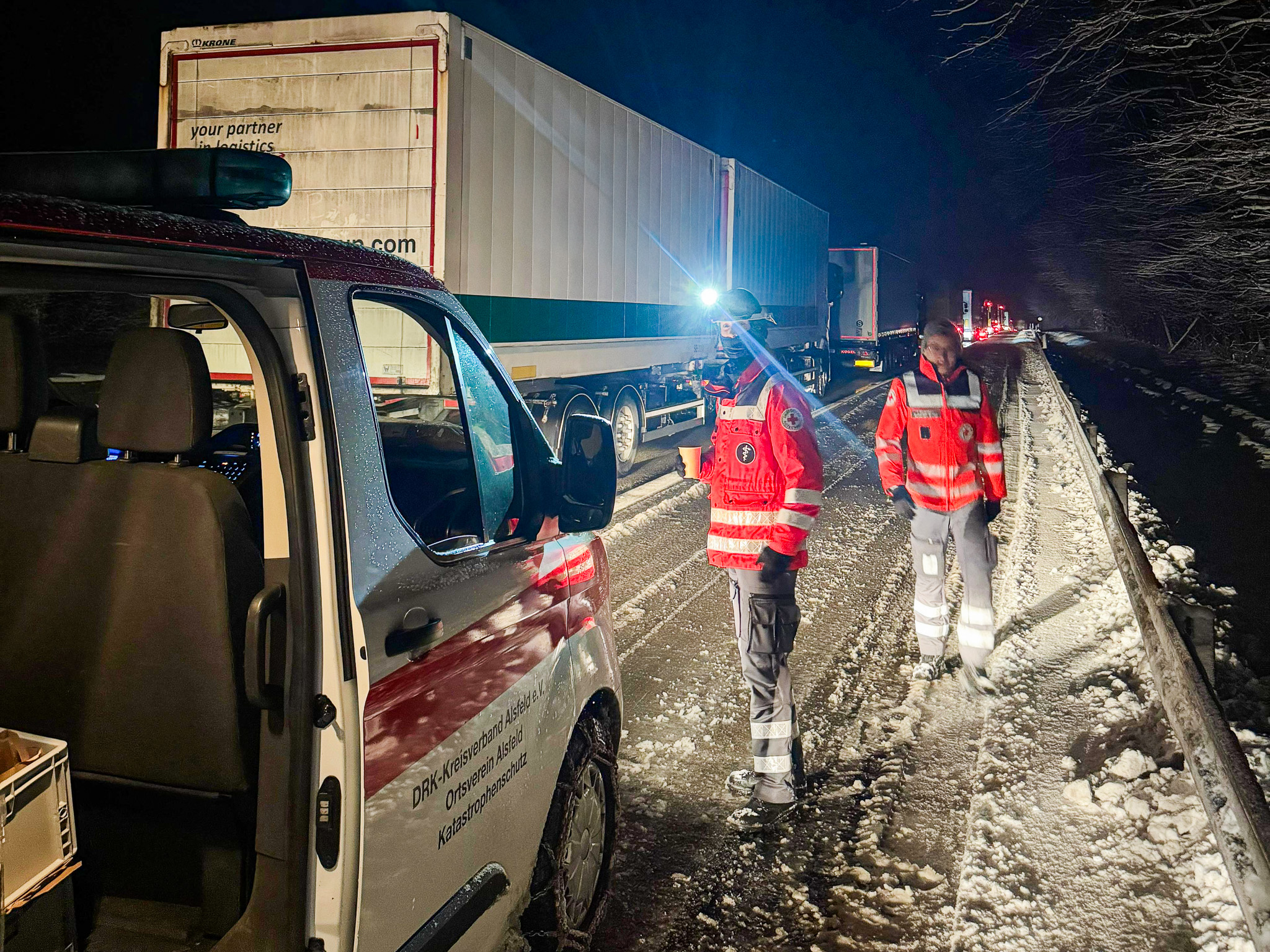 Schnee sorgte auf den Autobahnen für Staus und Blockaden. Foto: DRK