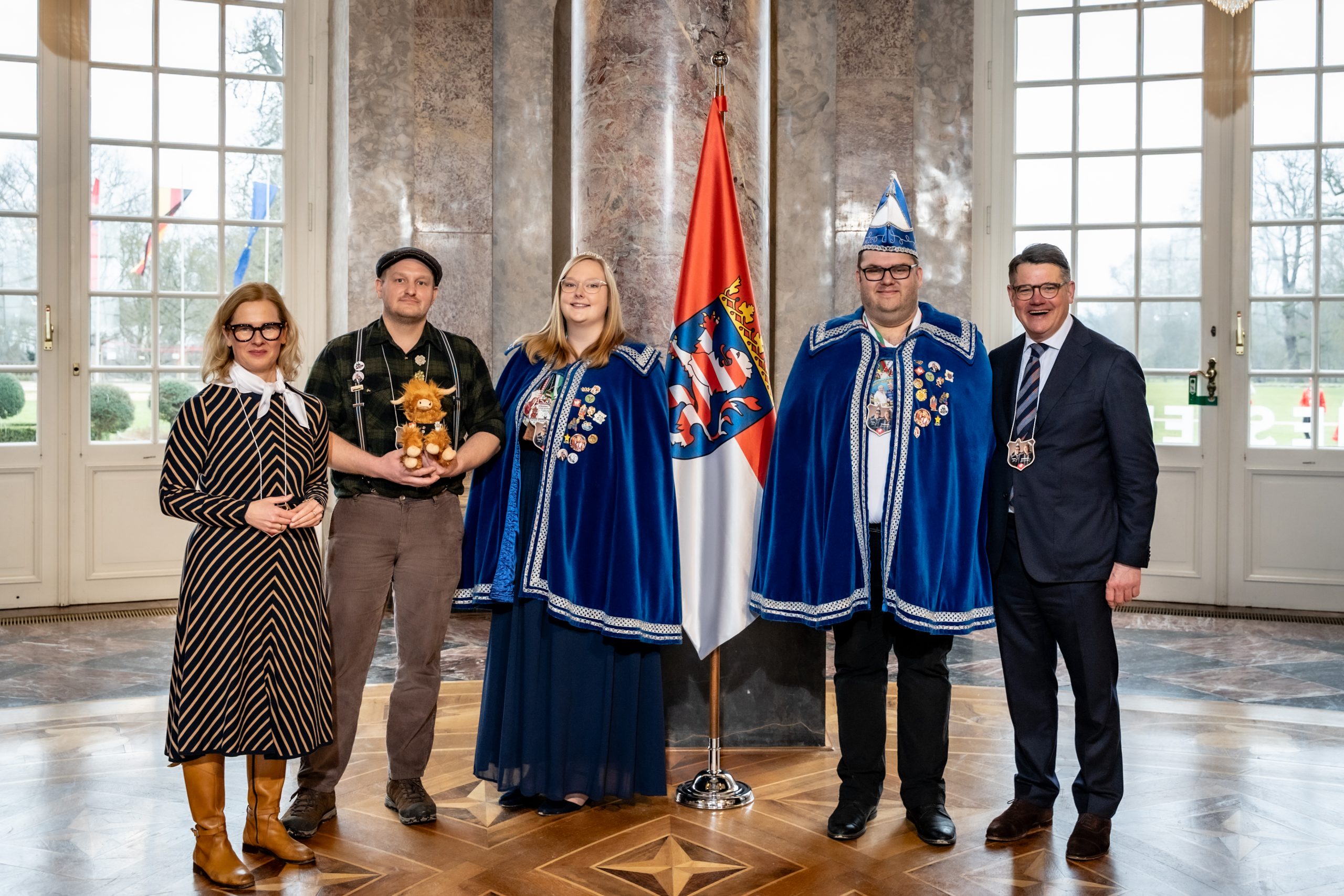METZLOS/WIESBADEN (ol). Ministerpräsident Boris Rhein hat in Schloss Biebrich Vertreterinnen und Vertreter von mehr als 115 hessischen Fastnachtsvereinen empfangen. Unter den Gästen waren auch Prinz Alex II. und Prinzessin Ann-Kathrin I. mit Knecht Dominik I. vom MetzLoser Carneval Club. Der Ministerpräsident würdigte die Fastnacht als gelebtes Ehrenamt und wichtigen Bestandteil des kulturellen und gesellschaftlichen Lebens in Hessen.