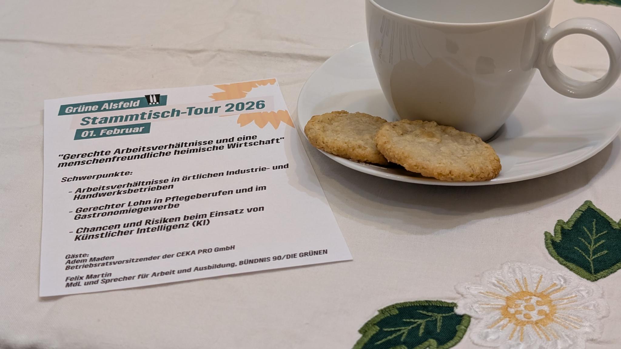 Diskussion um gerechte Arbeit, starke Ausbildung und zukunftsfähige Wirtschaft bei Kaffee und KuchenAlsfelder Grüne setzen Stammtisch-Tour fort