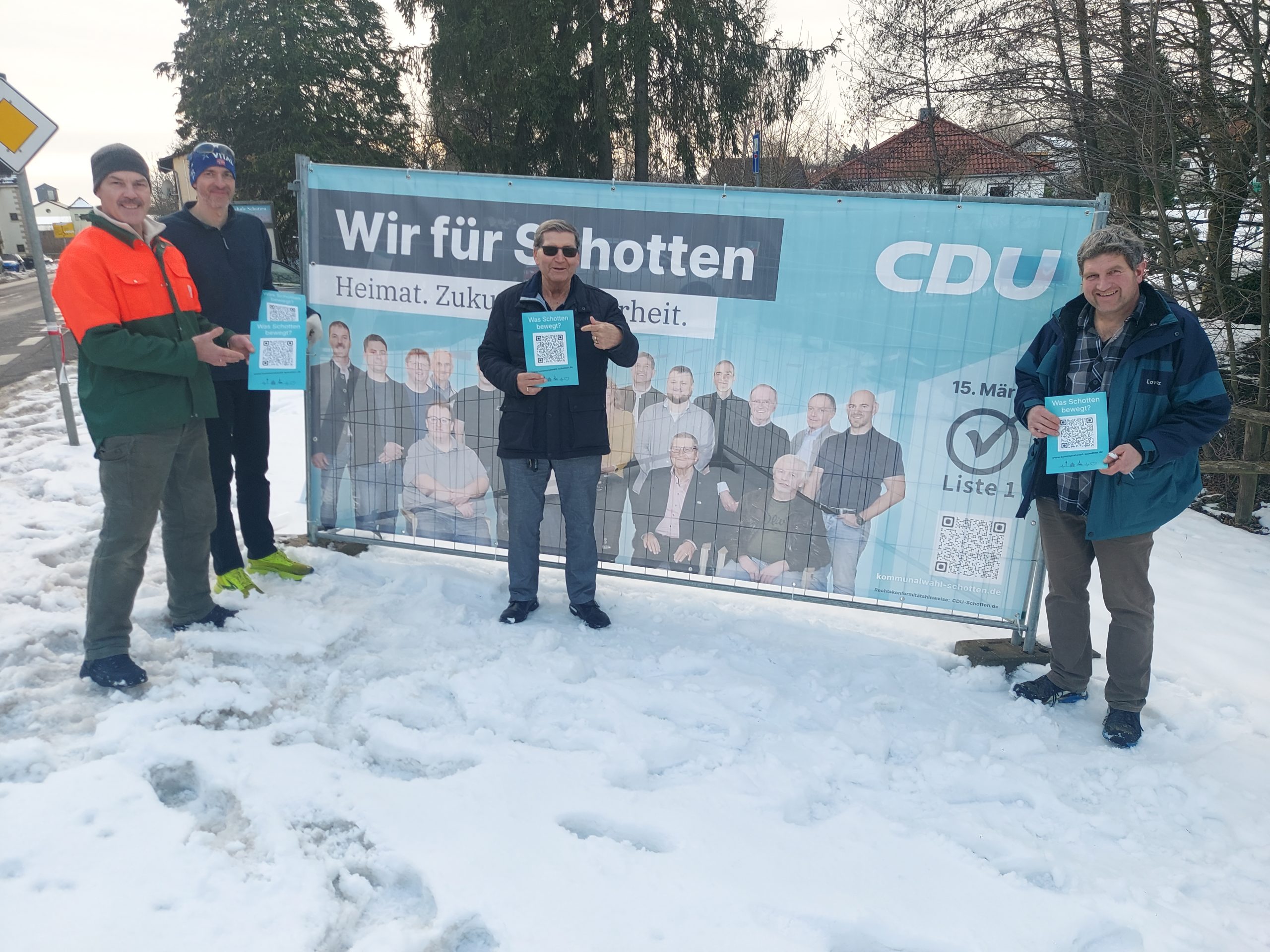 SCHOTTEN (ol). Unter dem Motto „Wir für Schotten!“ startet die CDU Schotten in den Kommunalwahlkampf. Mit QR-Codes, einer eigenen Internetseite und neuen Social-Media-Angeboten setzt die Partei auf einen zeitgemäßen, digitalen Ansatz. Ziel ist es, die Kandidatinnen und Kandidaten vorzustellen, politische Inhalte transparent zu machen und insbesondere Erstwählerinnen und Erstwähler zur Stimmabgabe zu motivieren. Trotz digitaler Schwerpunkte bleibt der persönliche Austausch ein wichtiger Bestandteil des Wahlkampfs.